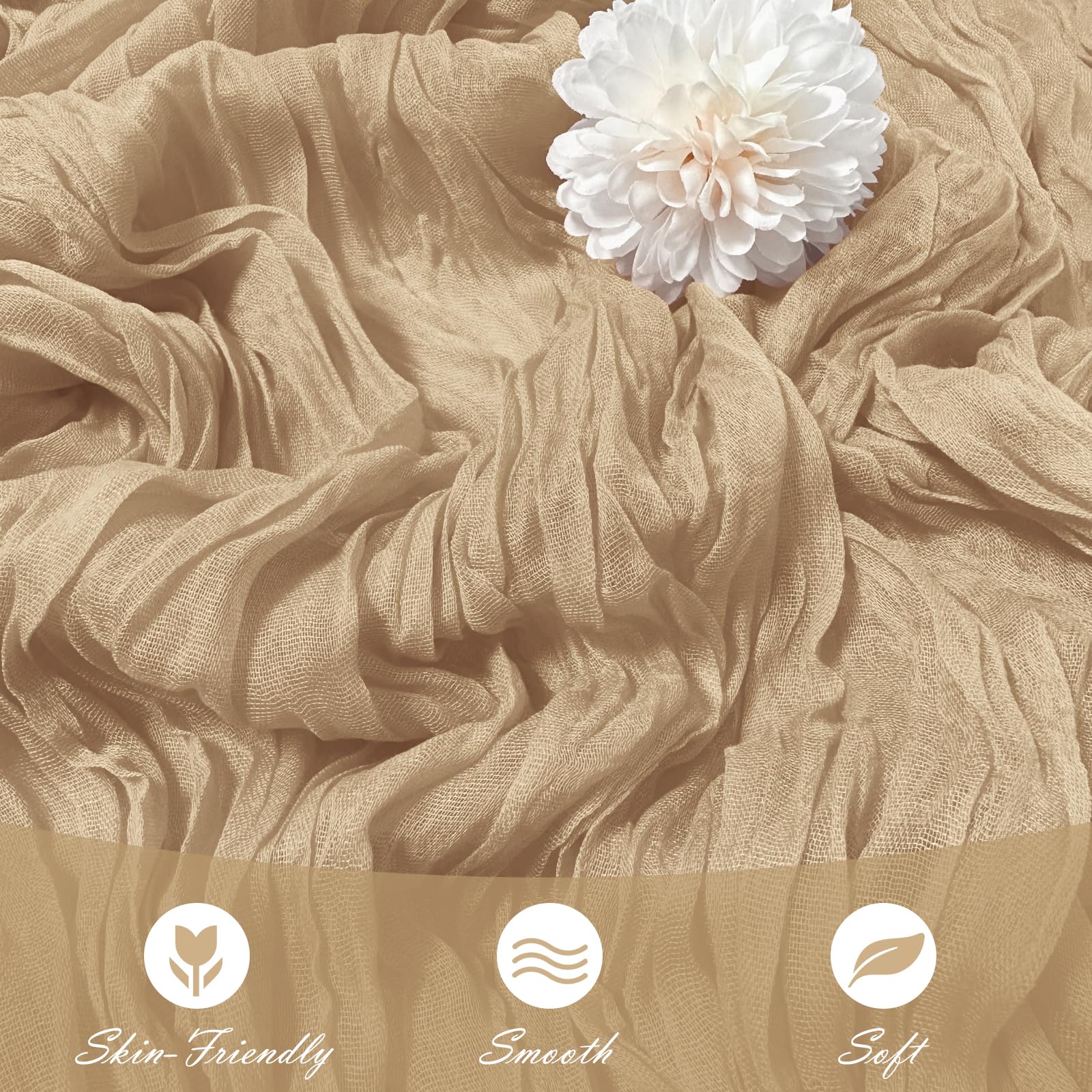- Premium Material: Our cheese cloth table runners are made from premium gauze table runner and crinkle gauze fabric. The beige table runner with beautiful wrinkles, soft to the touch, reusable, washable and fade-resistant. This boho gauze table runner is translucent and drapes naturally, perfectly and elegantly placed on a table or hung from the floor