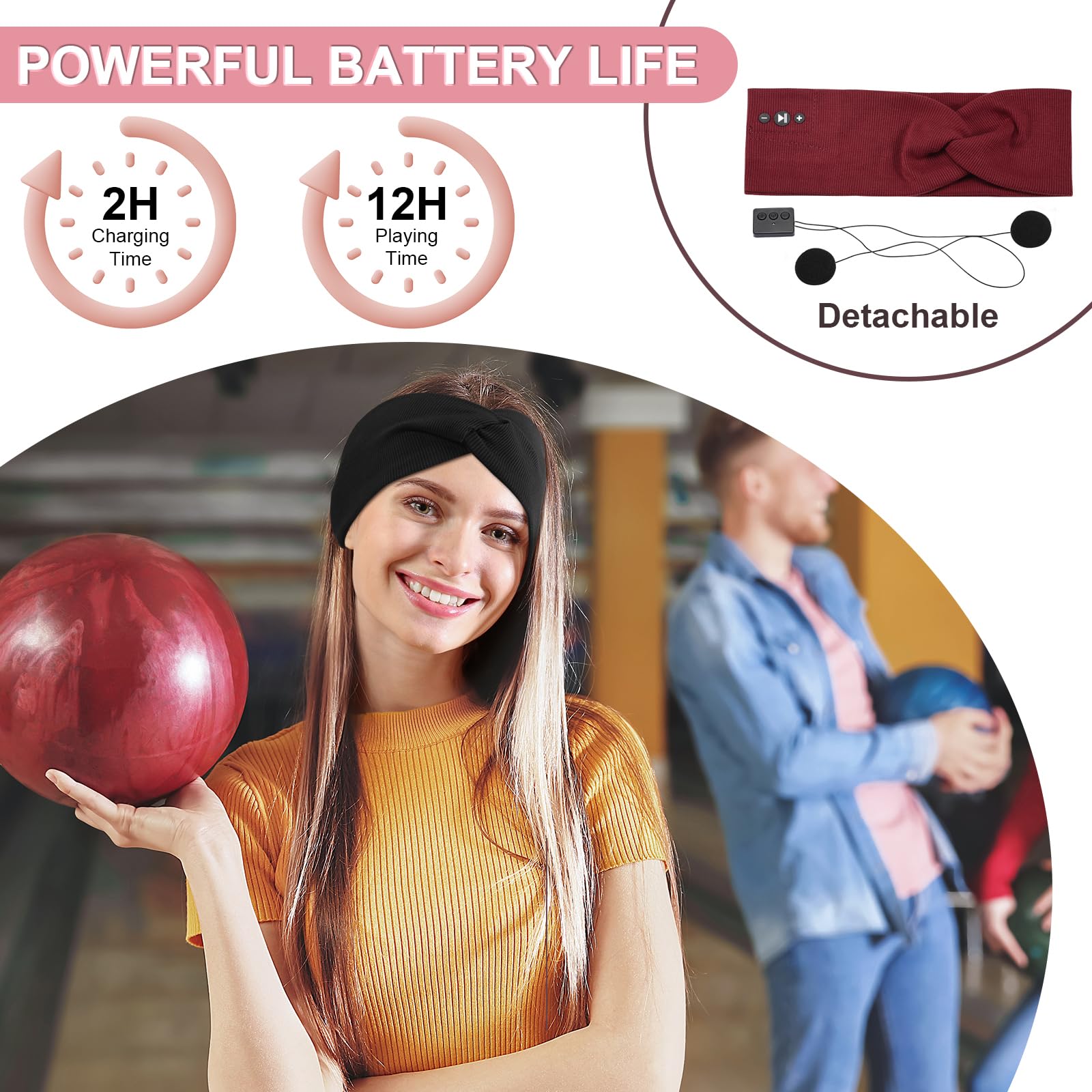 2-Pack Headband Headphones with Thin HD Speakers, Bluetooth Headband for Women, Stylish Knotted Design, Wireless Bluetooth Headphones for Workout, Daily Life, Yoga, Travel, Meditation - Red&Black