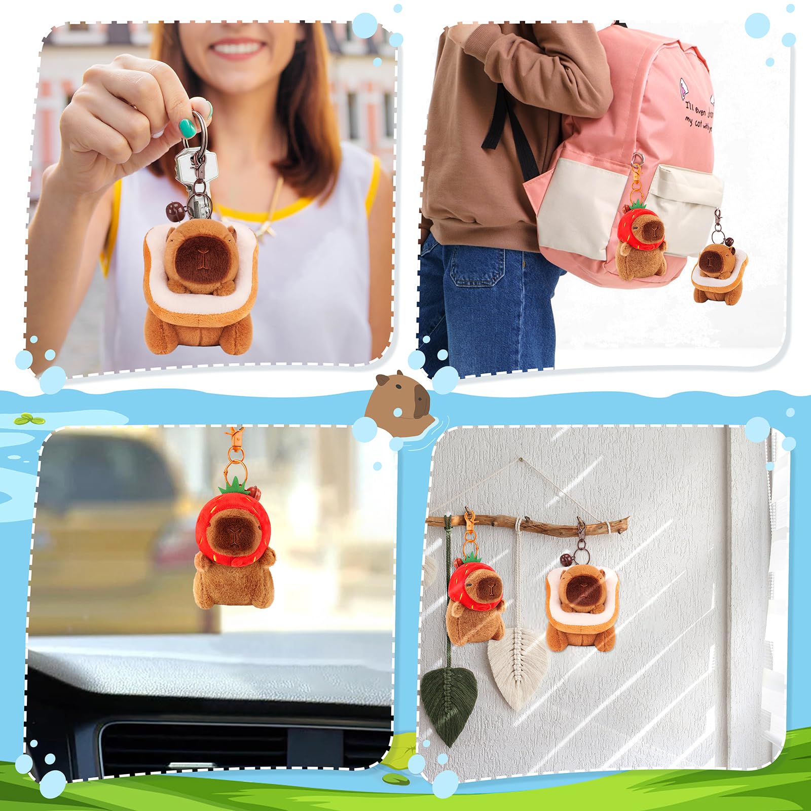 Achwishap 2PCS Capybara Plush Keychain,Cute Keychain Capybara Stuffed Animal,Soft Capybara Plushies Toys Key Chain,Kawaii Plush Stuffed Toys for Kids Adults(Capybara Strawberry Hat,Capybara Bread)