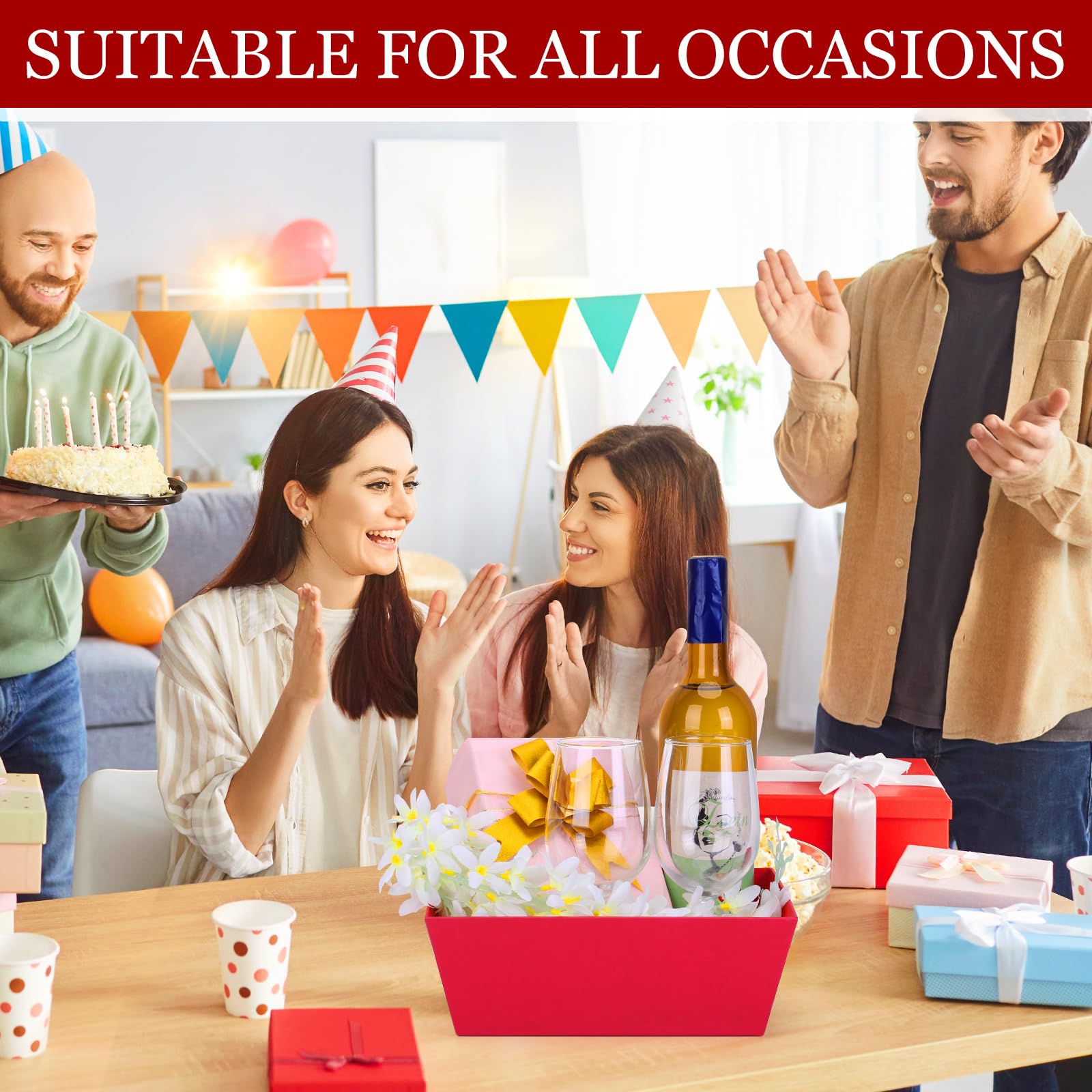 - 【Versatile Gift Applications】 Our red gift baskets empty are ideal for countless occasions including birthdays, anniversaries, graduations, baby showers, thank-you gifts and business presentations. They work beautifully for holiday gifts (Christmas, Valentine's Day, Chinese New Year), romantic presents, sympathy arrangements, and housewarming tokens. These ready-to-fill empty baskets for gifts transform ordinary items into extraordinary, eye-catching gifts with their vibrant red presentation.