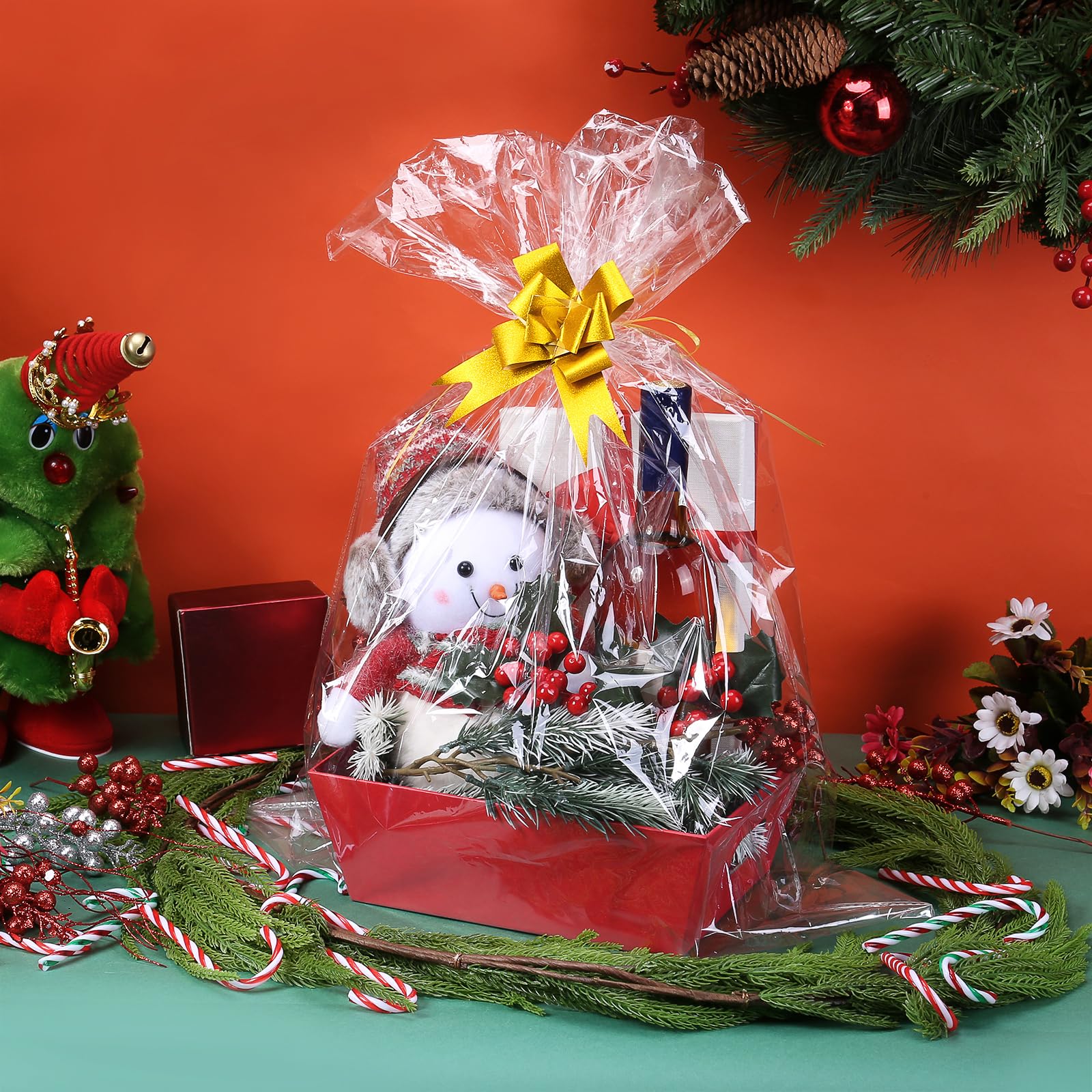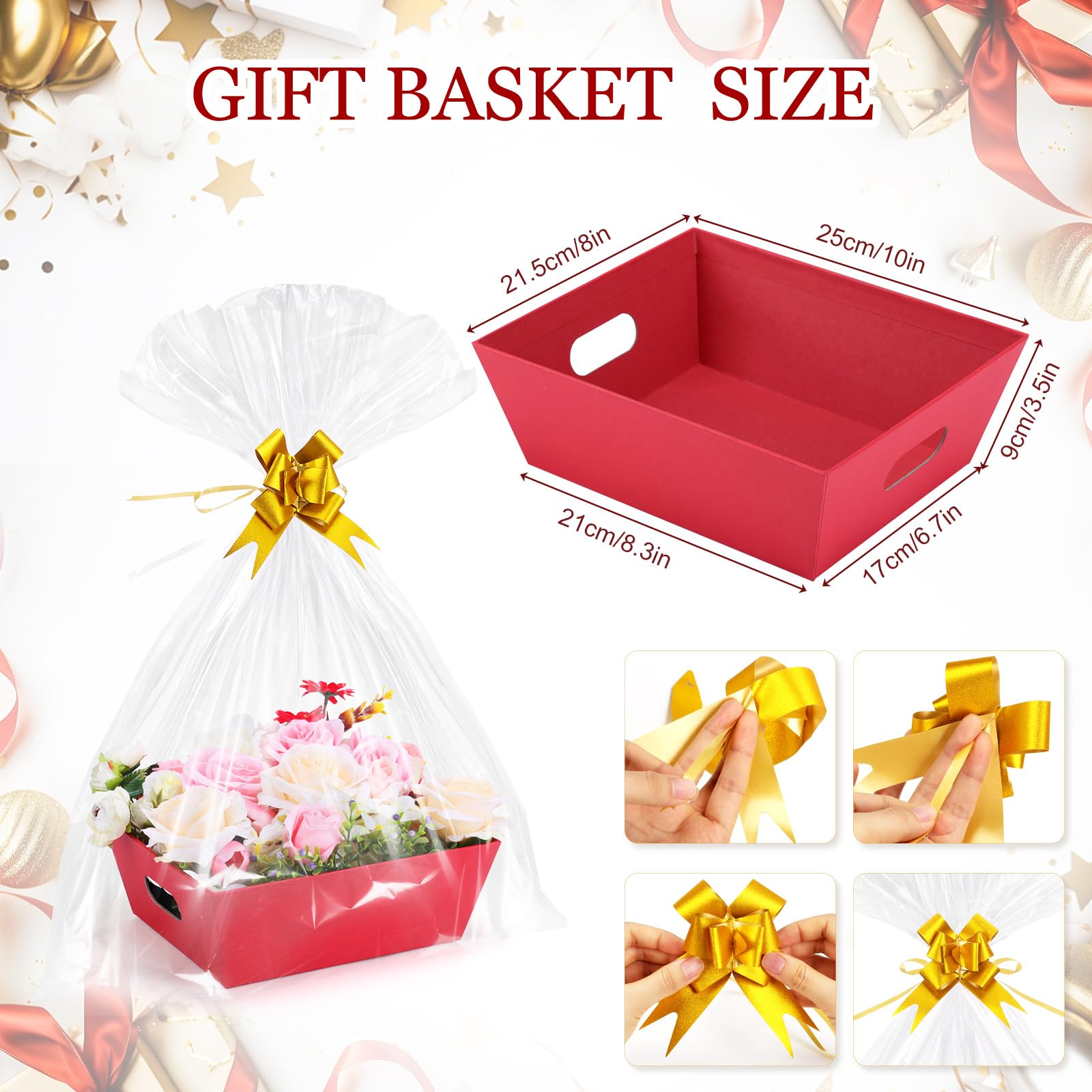 - 【Complete Gift Basket Set】 When you purchase our 10-pack empty gift basket set, you'll receive 10 premium red baskets, 10 clear plastic bags, and 10 elegant gold bows - a complete packaging solution for all your gifting needs. This all-inclusive baskets for gifts empty set provides everything required for professional presentations, eliminating the hassle of buying separate components while ensuring beautiful, ready-to-use packaging for any occasion.