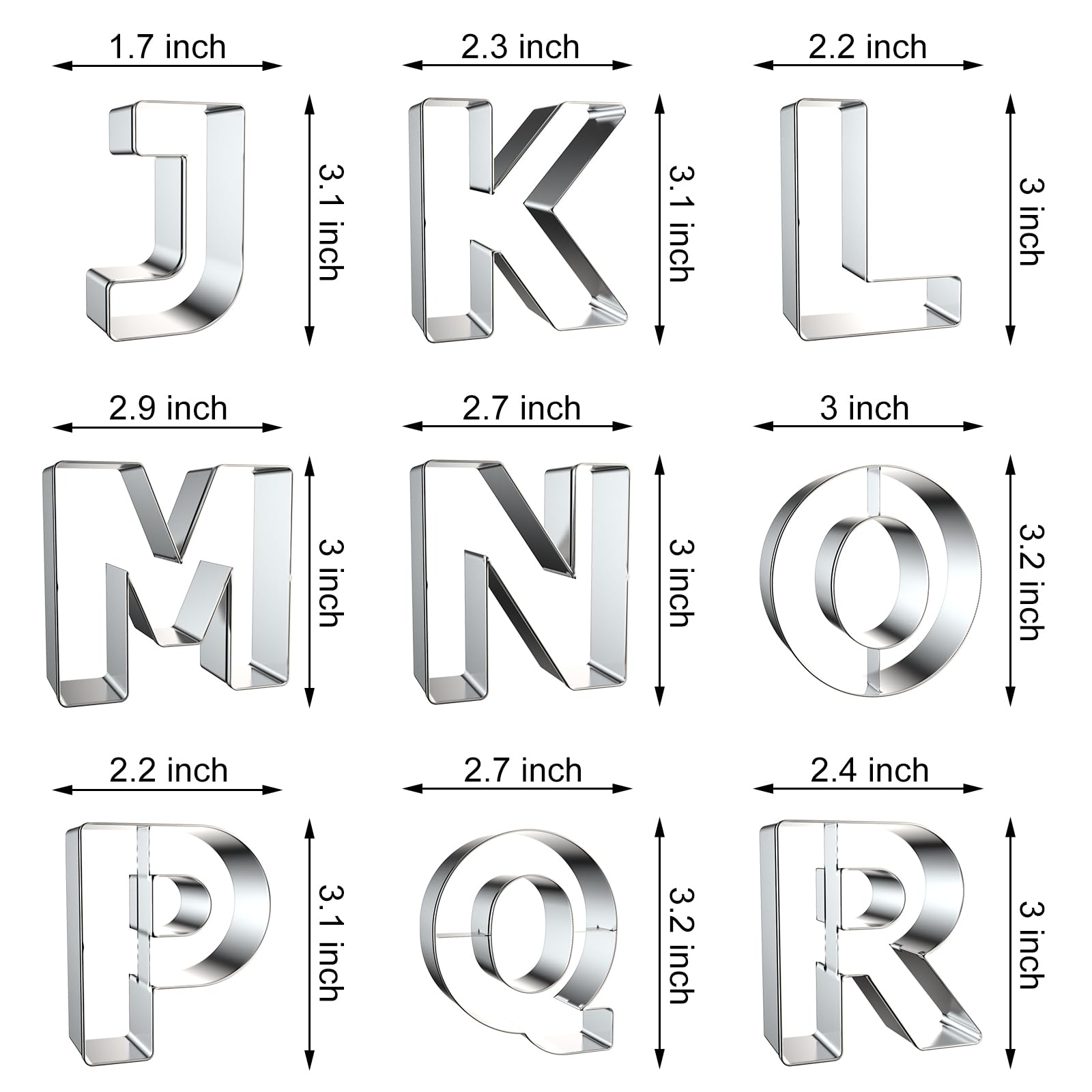 Alphabet Letter Cookie Cutters Shapes Large 3 Inch - 26 Pcs Stainless Steel Cookie Cutter Set Fondant Biscuit Fruit Dough Mold Tools for Birthday, Christmas, New Year and Holiday Party Decorations