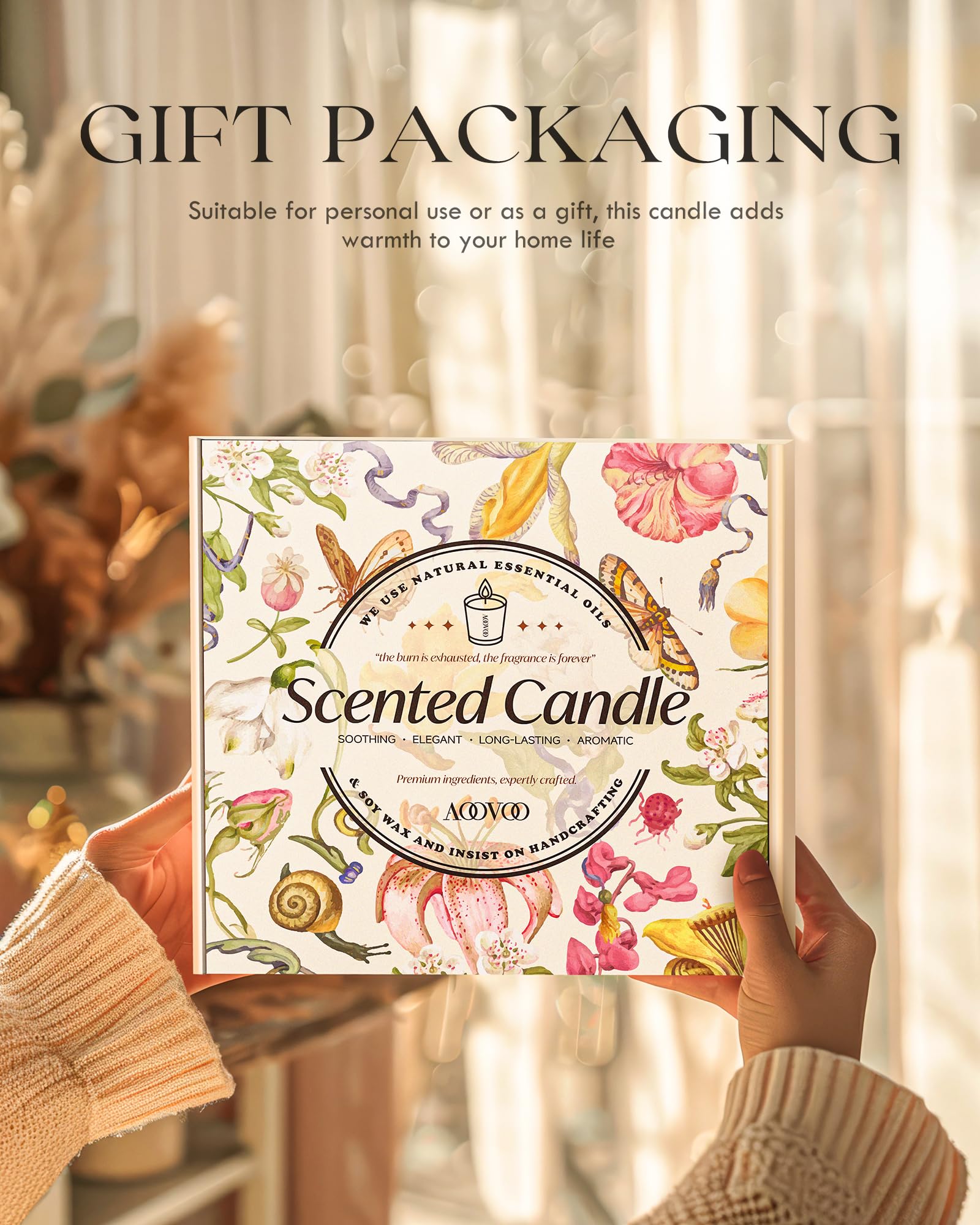 - SCENTED CANDLES GIFT Set for WOMEN and MEN: The fragrance is prepared by our professional perfumer, and the exquisite packaging box is designed according to the AOOVOO brand, floral fragrance as inspiration, We are confident in the professional craftsmanship of the aromatherapy candles. The scented candles are perfect for Christmas gift, Valentine's Day gift, mothers day gifts for mom, Thanksgiving Day gift, anniversary gift, and Birthdays gifts for women, mom mothers, girlfriends and wife