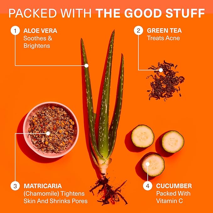 - NOURISH YOUR SKIN WITH OUR CLEAN FORMULA. Our natural facial cleanser with vitamin C is enriched with organic cucumber, green tea, aloe vera, and matricaria, to naturally soothe all natural sensitive skin.