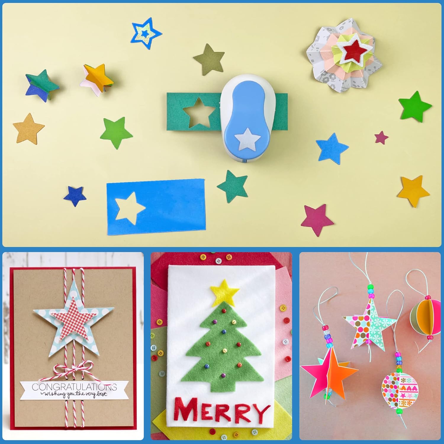 • ❤ SAVE TIME: The easy to use spring-action lever design allows you punch effortlessly, just put a paper inside it, and take a little bit effort to the handle, comfortable to use, easily getting a clear star shape from card-stock or paper.
