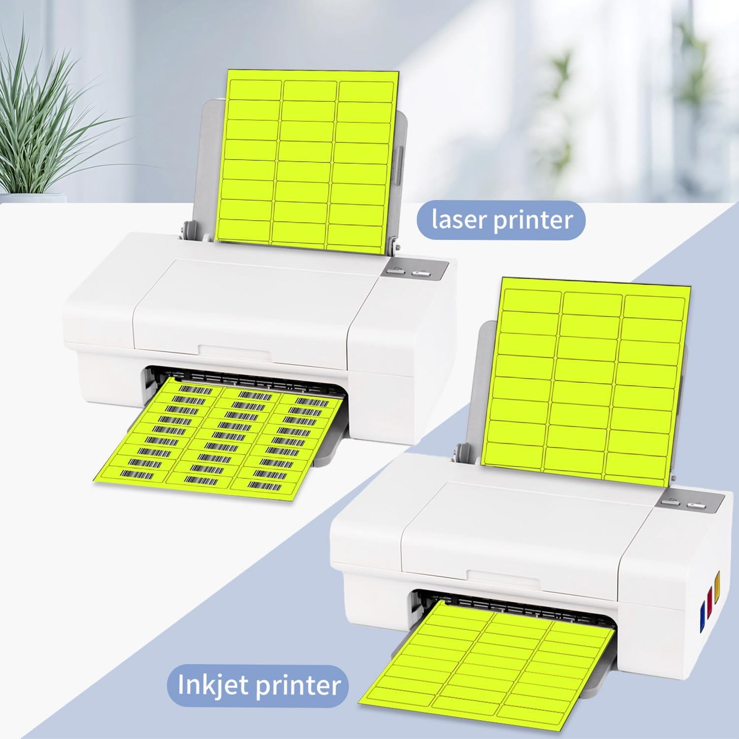 STARLIBOO 1" x 2-5/8" Address Labels- Neon Color Fluorescent Mailing Labels Stickers for Laser/Ink Jet Printer 8.5"×11"- Fluorescent Yellow