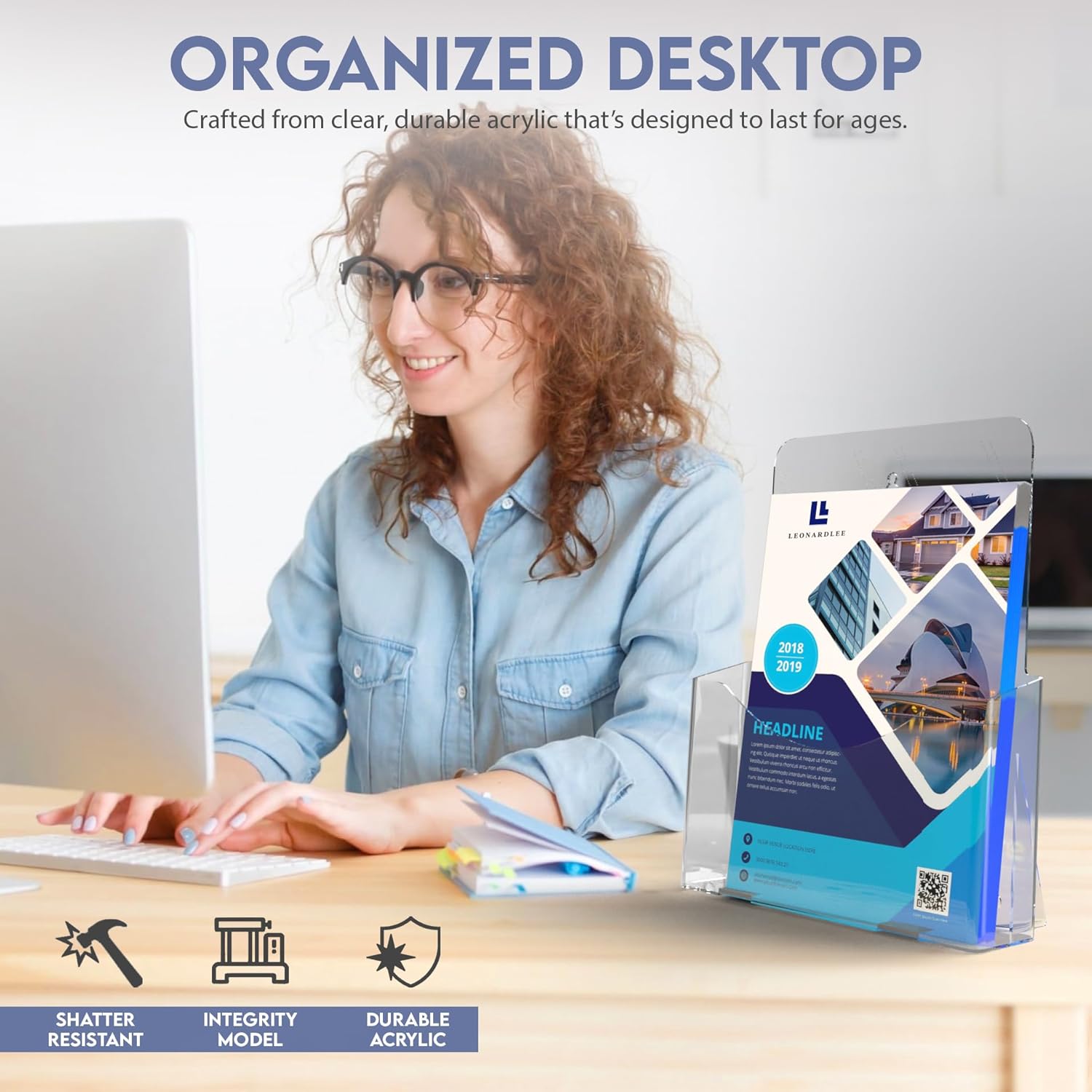 - Professional Presentation: The LEONARDLEE acrylic plastic holder set elevates your brochures, booklets, magazines, and flyers, offering a sophisticated display for any setting, whether on a desk or mounted on a wall.