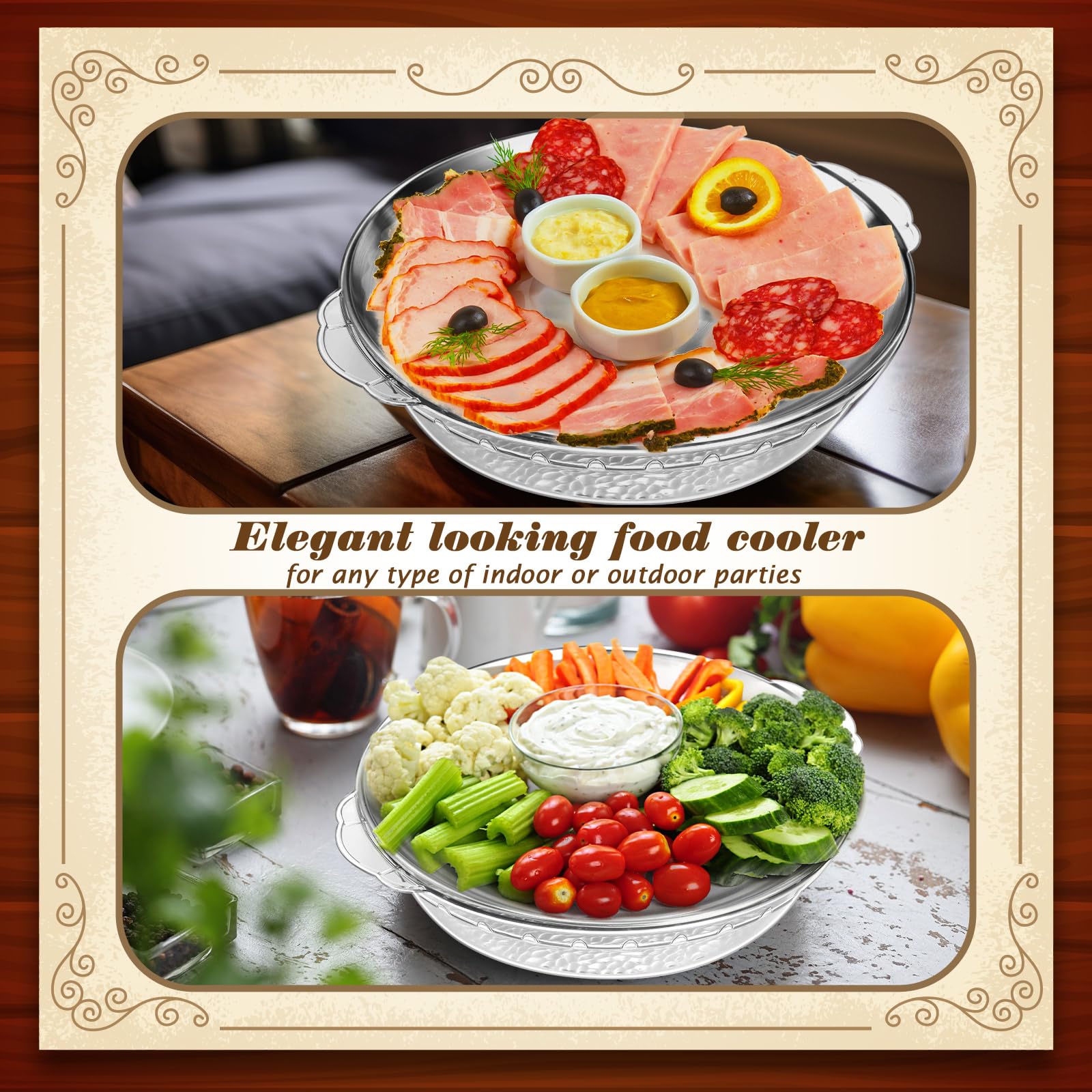 - Versatile Usage: this veggie trays for serving for party is suitable for family gatherings, company events, cookout, BBQ, picnic, camping; Elegant looking food cooler for any type of indoor or outdoor parties; Ideal for cooling food outside