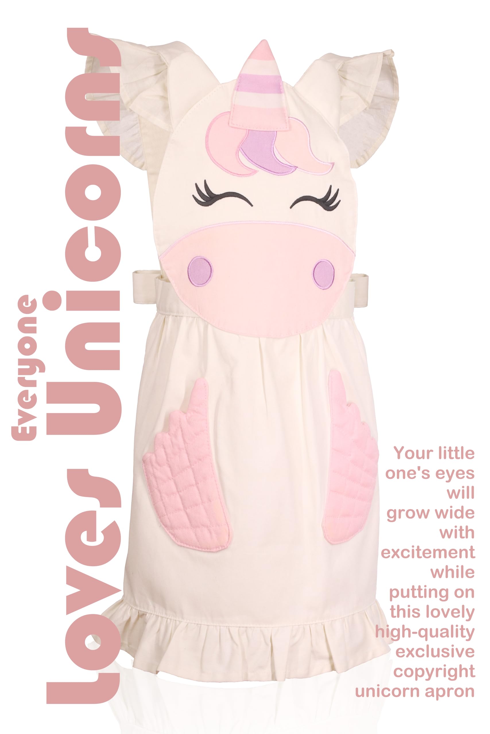 - π§ EVERYONE LOVES UNICORNS: Your little one's eyes will grow wide with excitement while putting on this lovely high-quality exclusive copyright unicorn apron. Made from 100% canvas cotton, it has cute, embroidered eyes which give it a touch of classic texture. The soft ruffles on the straps and hem and dainty pleating add dramatic and voluminous flair. The quilted wing pockets, a little adorable, padded horn top off this beautiful and creative design.