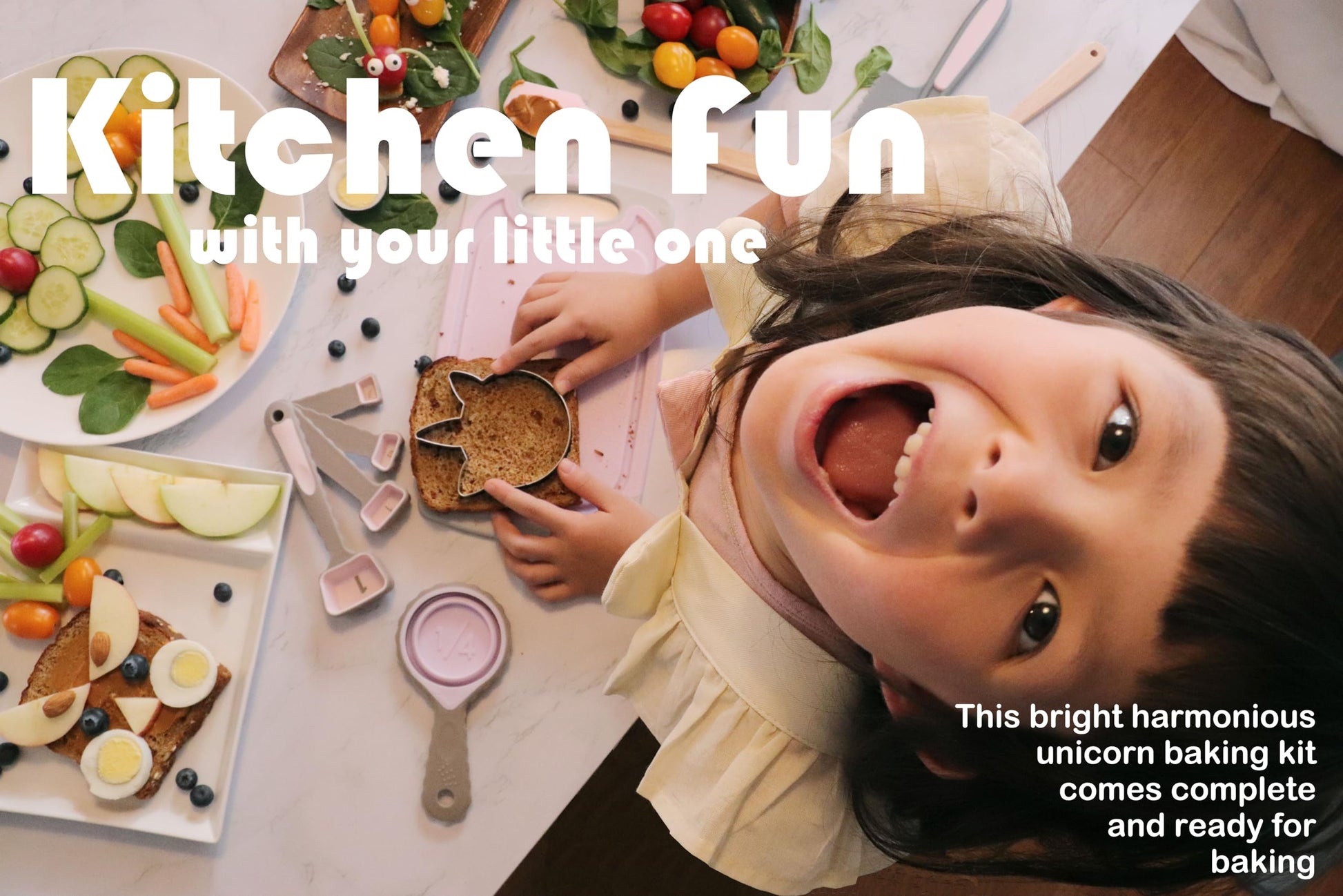 - π§ KITCHEN FUN FOR YOUR LITTLE ONE: This bright harmonious unicorn baking kit comes complete and ready for playful, imaginative fun. From baking warm yummy cookies, cutting scrumptious vegetables, to piling on mountains of frosting onto cupcakes, you and your child will explore, design, and decorate amazing culinary creations together.