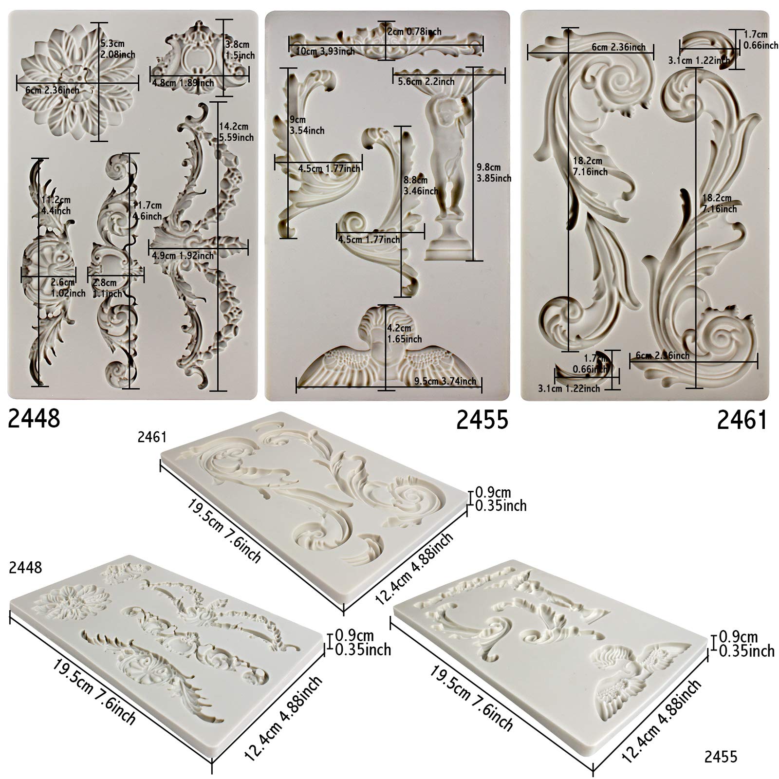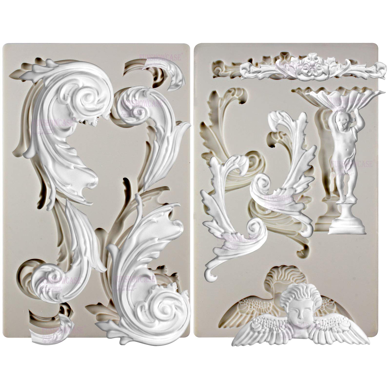 Baroque Style Ornament Curlicues Silicone Molds 3-Count Cherub Birdbath Scrollworks Art Deco Inspired Lace