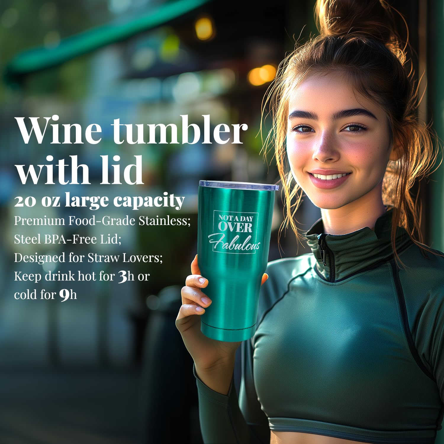 - Stainless Steel Tumbler with Straw:Tumbler with double-walled vacuum insulation, this sweat-free insulated tumbler with lid can preserve beverage temperature up to 24h for cold & 12h for hot, 'Not A Day Over Fabulous', positive quote printing brings her smile & happy mood every day, express your love and care, making it an ideal birthday gifts for her relaxing gifts for women