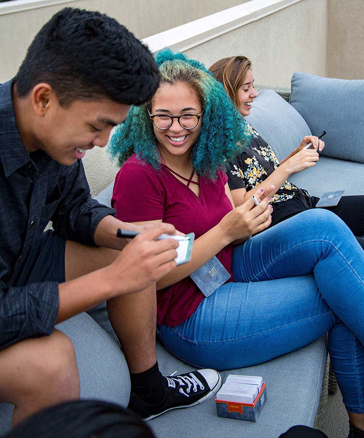 Pick one of over 250 Word Cue cards (with 500 total cues), write the word you think best completes the phrase – and try to match it exactly to another player’s word without giving a single hint.