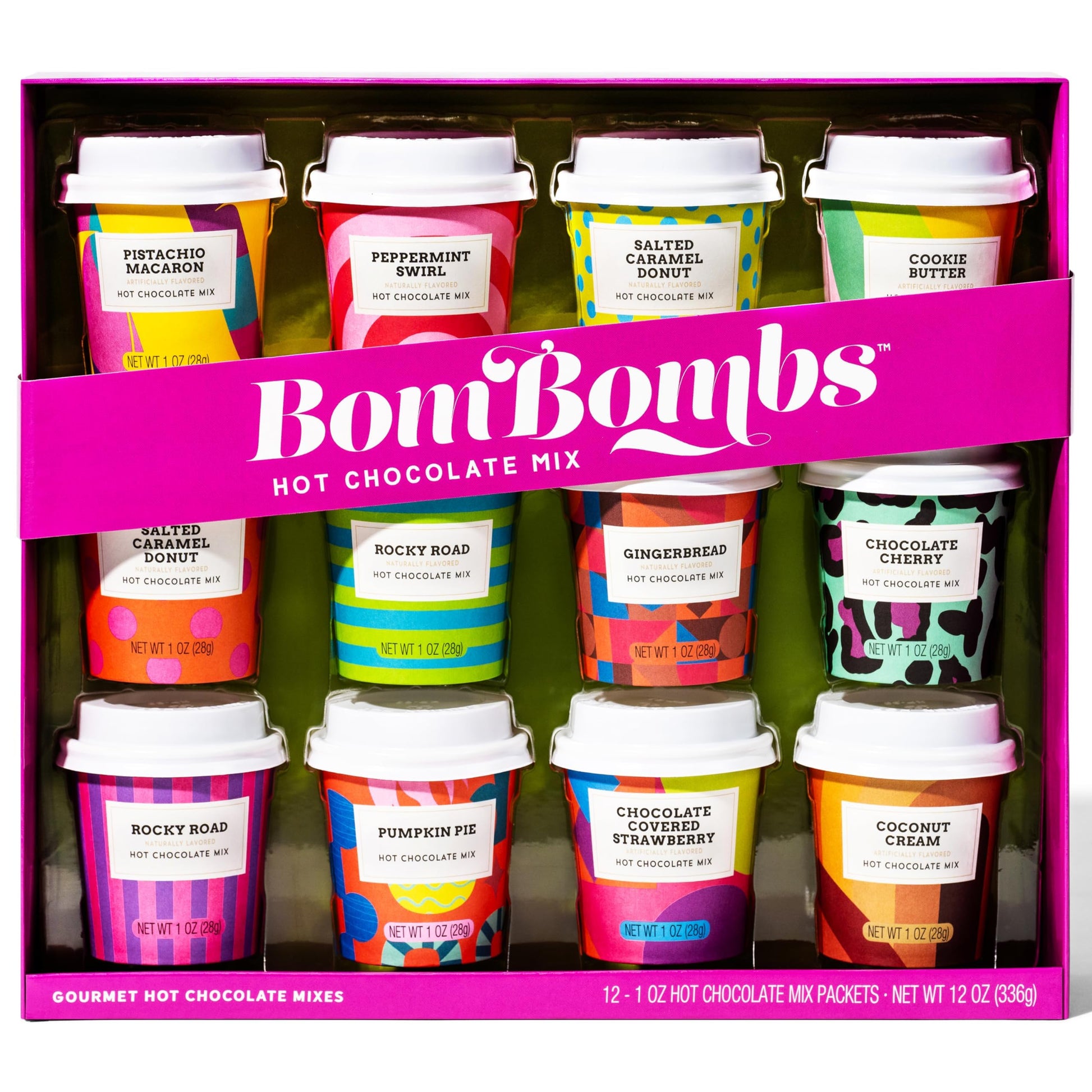 BomBombs, Hot Chocolate Mix Gift Set with Mini Cup Packaging, Dessert Flavors Include Rocky Road, Cookies Butter, Pumpkin Pie & More, Set of 12
