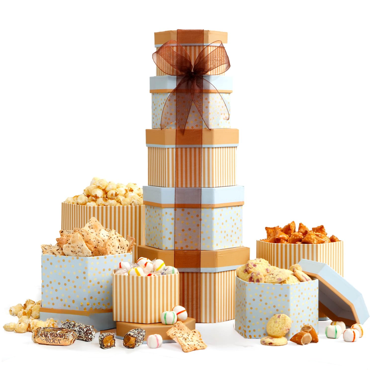 Broadway Basketeers Celebration Gift Tower with Sweets & Nuts