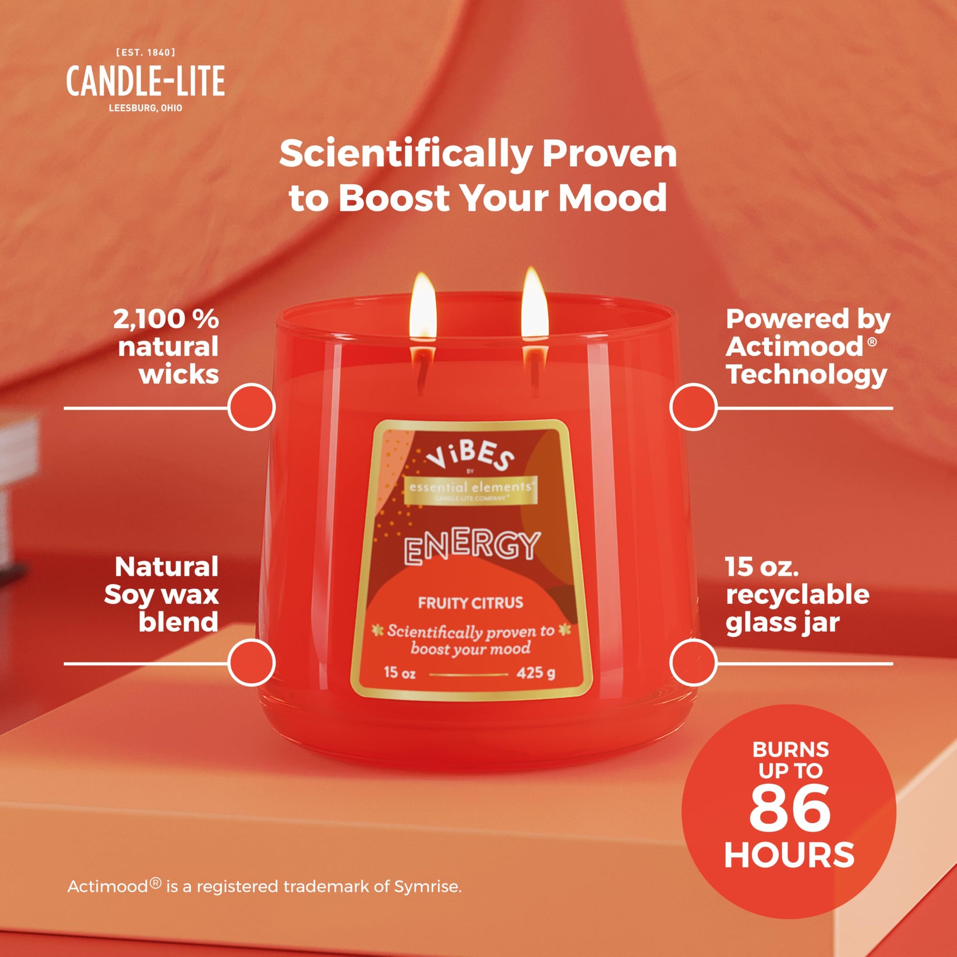 Candle-Lite Vibes Fruity Citrus Mood-Enhancing Scented Candles, 15 oz Jar, Aromatherapy, Proudly Poured in The USA, 2-Wick, 86 Hours Burn Time, Perfect Relaxation Gift