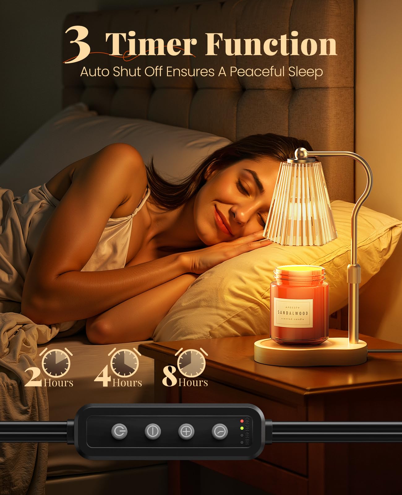 Candle Warmer Lamp, Wax Melt Warmer with 2 Bulbs for Scented Jar Candles, with Timer Dimmer Adjustable Height, Home Decor Gift for Girl Friend Mom Sister Women, No Flame No Smoke Warming Light, Amber