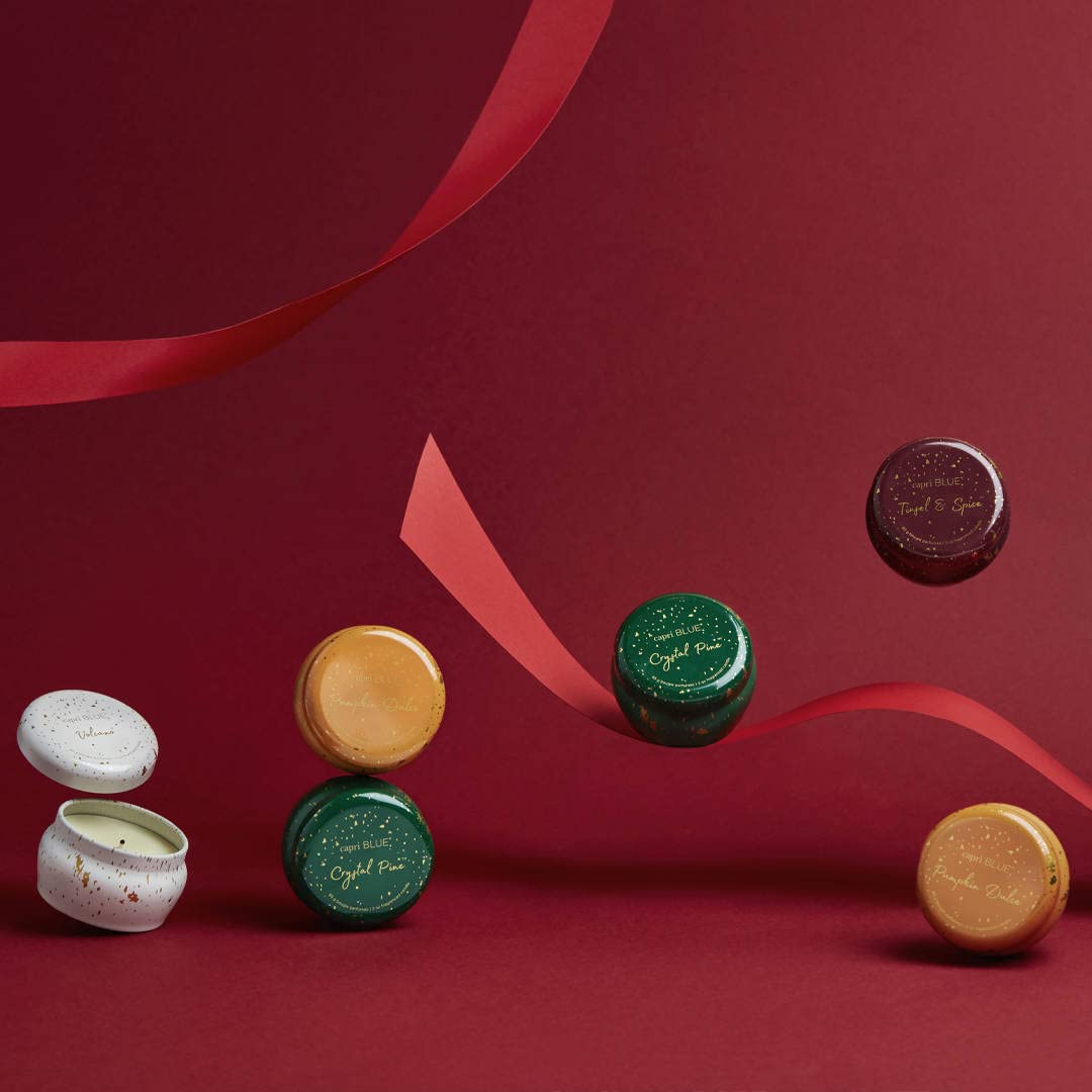 Capri Blue Glimmer Candle Holiday Gift Set - Volcano, Crystal Pine, Pumpkin Dulce, Tinsel & Spice - Luxury Aromatherapy Candles - 3 Oz Each