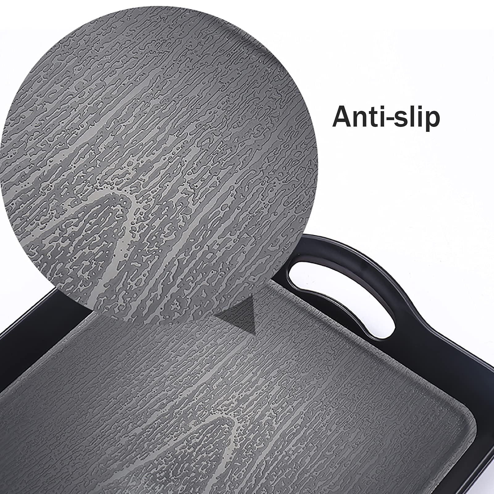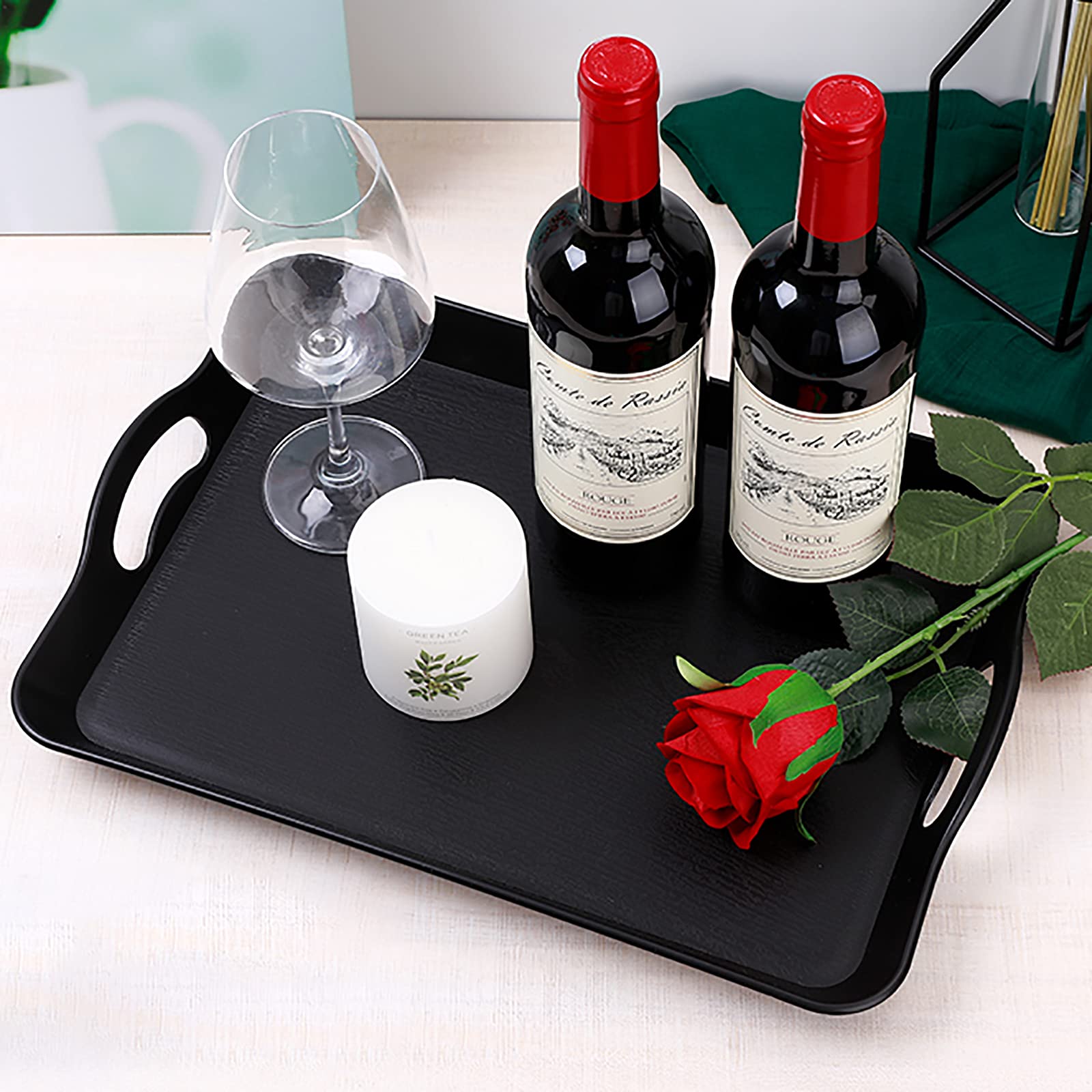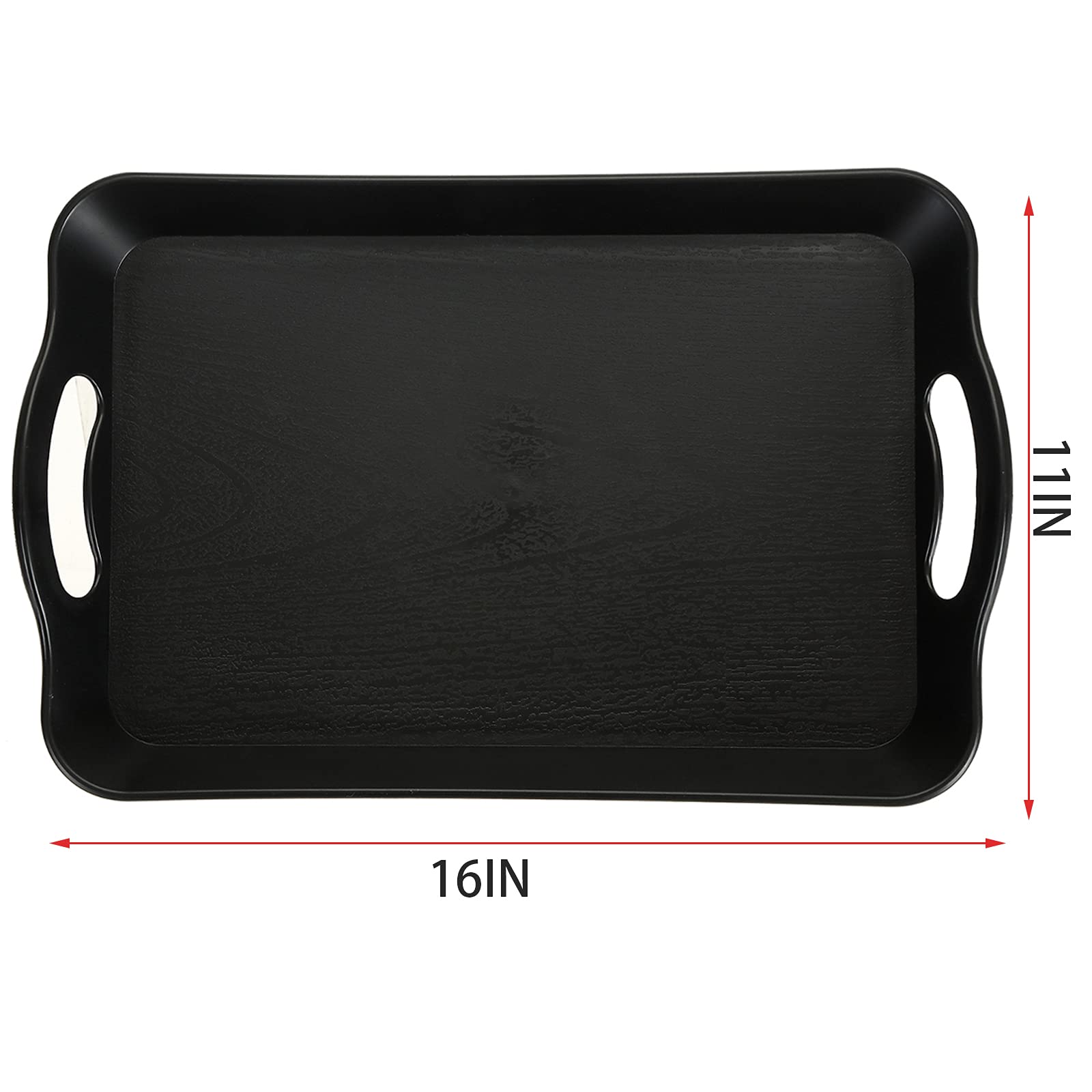 Cedilis 3 Pack Black Serving Trays with Handles,16 x 11IN Rectangular Non Skid Multi-Purpose Plastic OttomanTray for Restaurant, Parties, Coffee Table, Kitchen