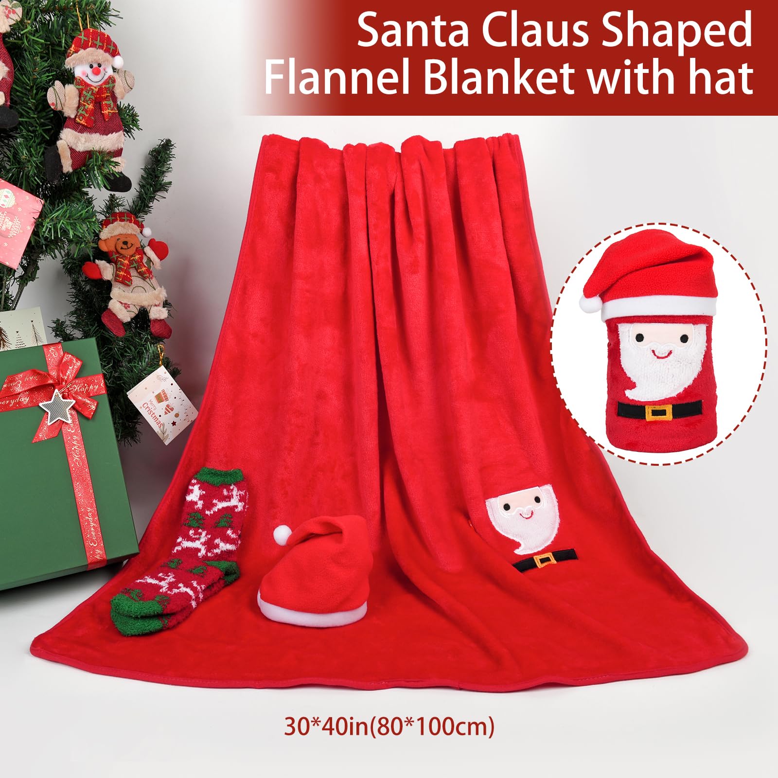 - Creative Santa Claus-shaped portable blanket: 30*40in, 0.2kg is easier to carry and use than other sizes of blankets. The unique button design allows you to easily roll up the blanket and put on a cute Christmas hat. Imagine the surprised expression on her face when she receives a gift and discovers a blanket from a cute Christmas doll. When she uses it as a shawl, cloak, or knee covering, it will always remind her of you.