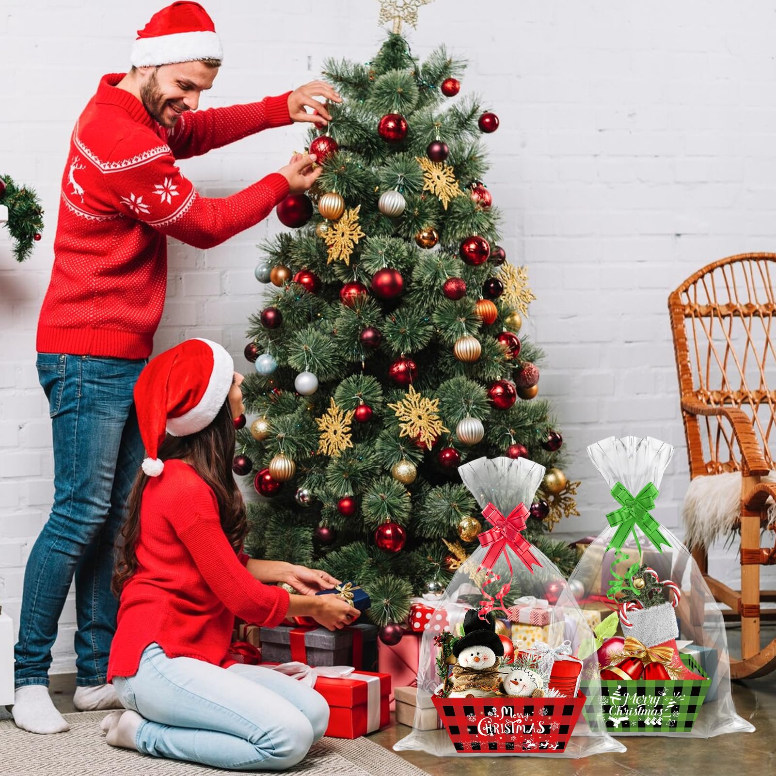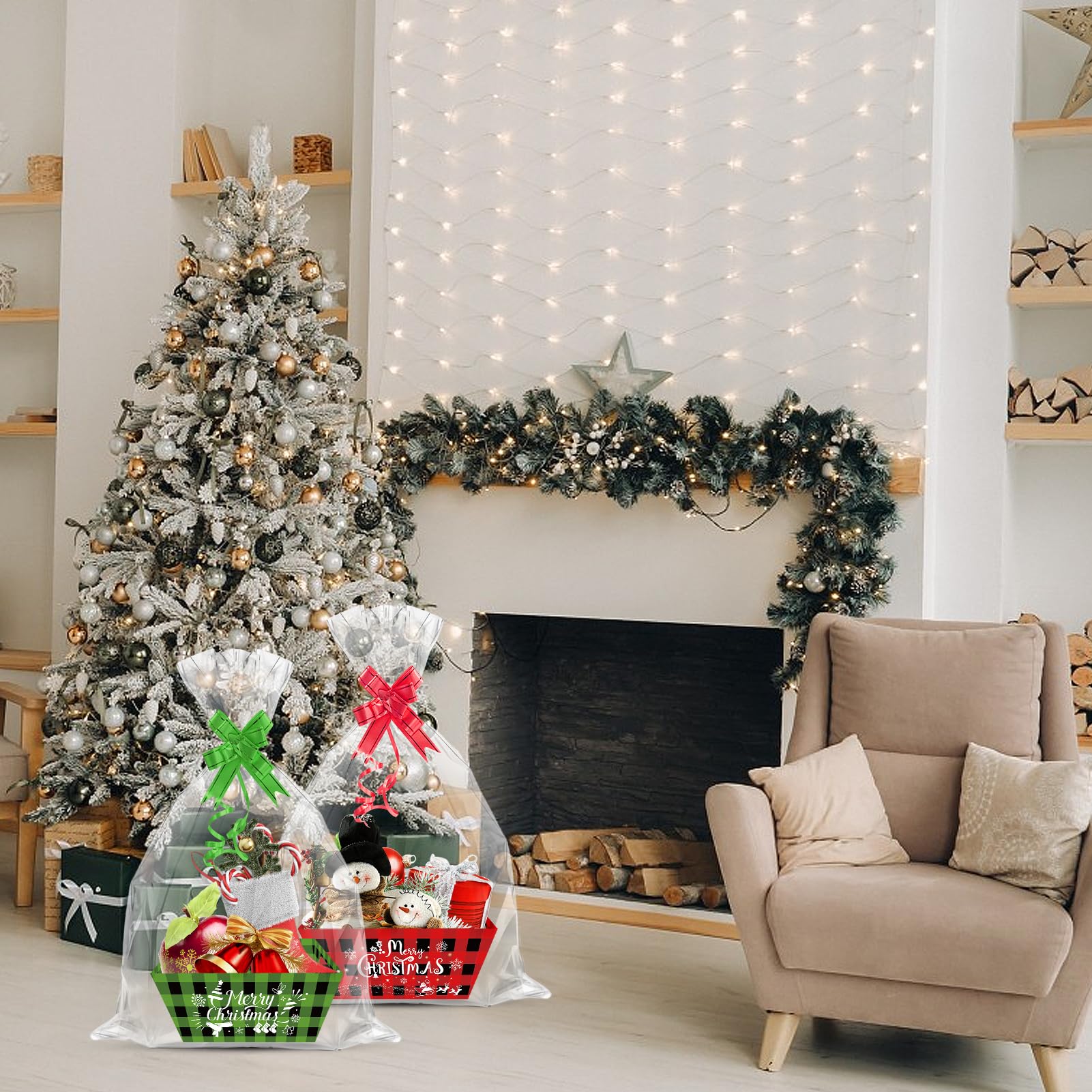 - Quality Materials: These Christmas empty gift baskets are made of thick cardboard material, and the transparent cellophane bags and gift tags are made of plastic material, strong and reliable. With Christmas buffalo plaid colors, Christmas gift basket set can bring a wonderful experience to Christmas party decorations supplies