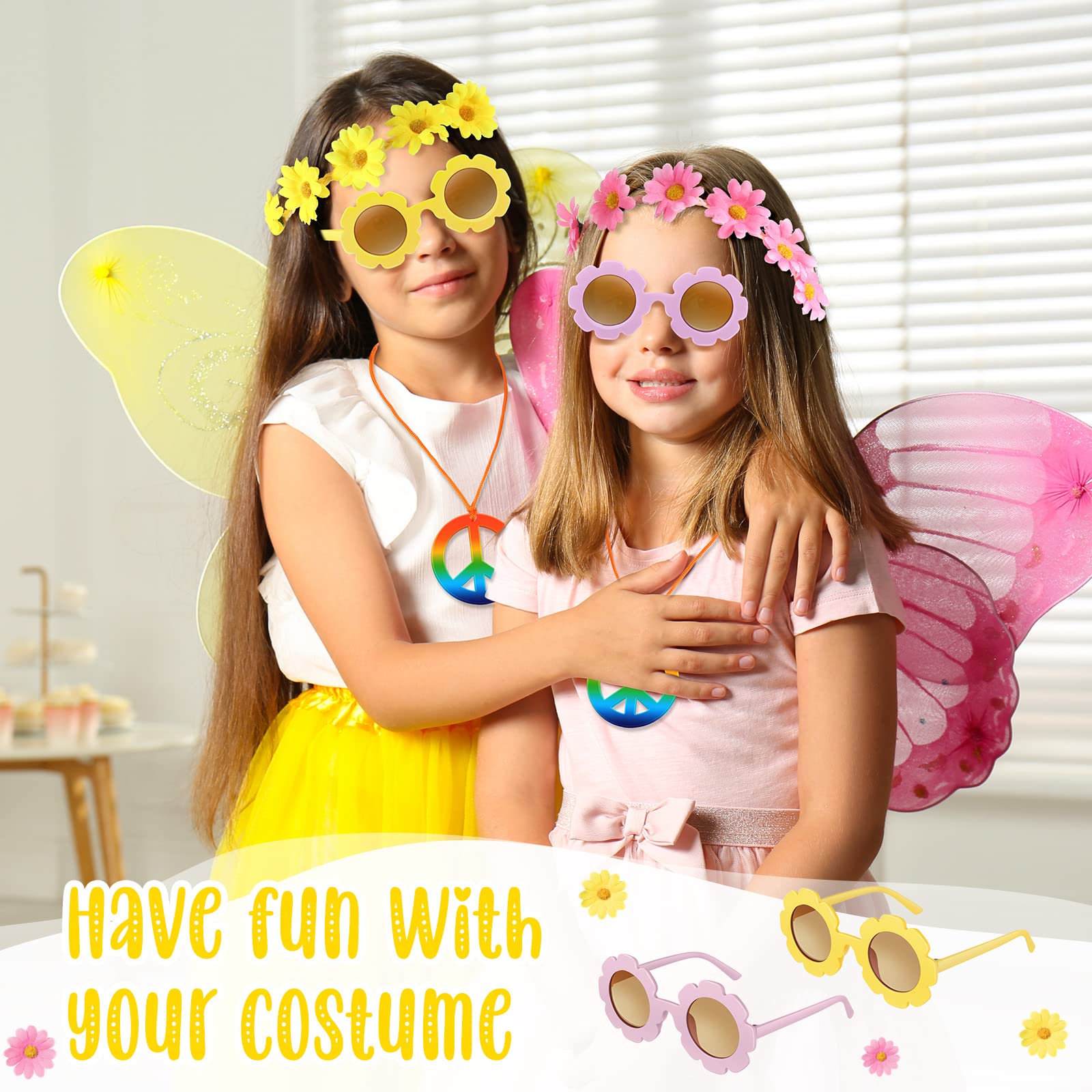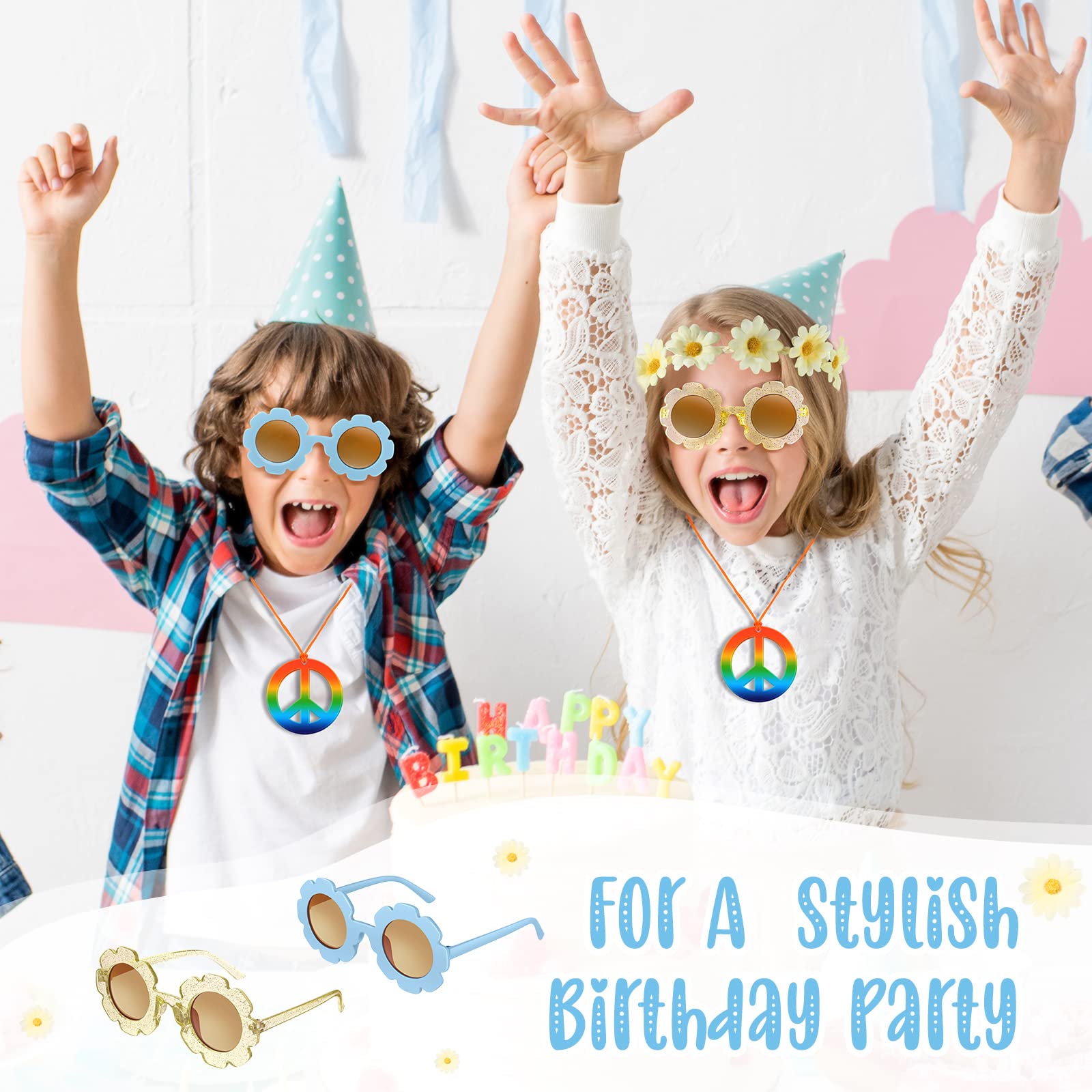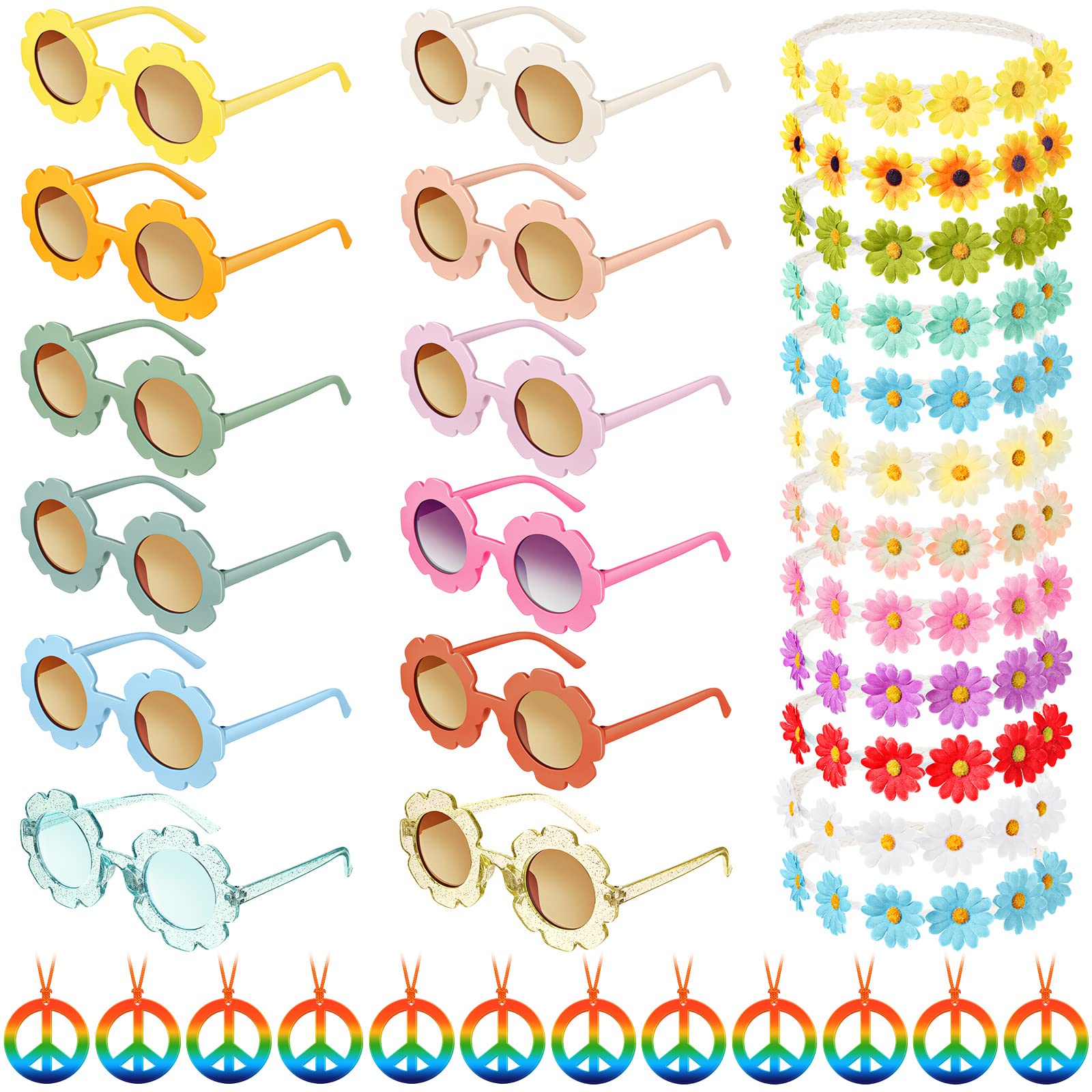 Cindeer 36 Pcs Retro Flower Sunglasses Daisy Flower Headbands Peace Sign Necklace Set, Groovy Party Decorations Hippie Costume Accessories 60s 70s Party Favors for Kids