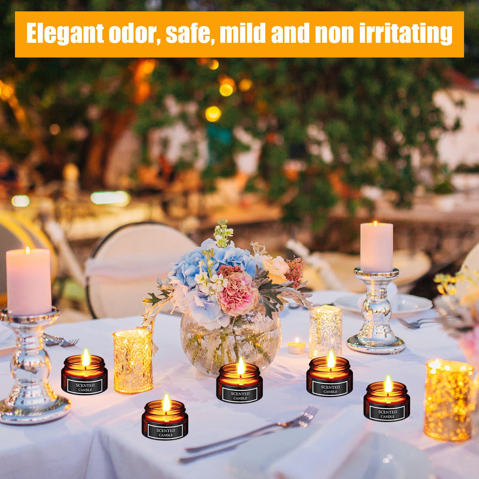 - Exquisite and Compact: the scented candle set comes in minimalist amber glass containers, the size of each candle is about 1.77 x 1.97 x 1.38 inches and weighs 0.7 oz, one candle can burn approximately 5 to 6 hours; The soy wax candles burn cleanly, purifying the air in your home and delivering a refreshing and long lasting burn; The size does not take up too much desktop space, allowing you to immerse yourself in the charming atmosphere and fill your room with charming fragrance