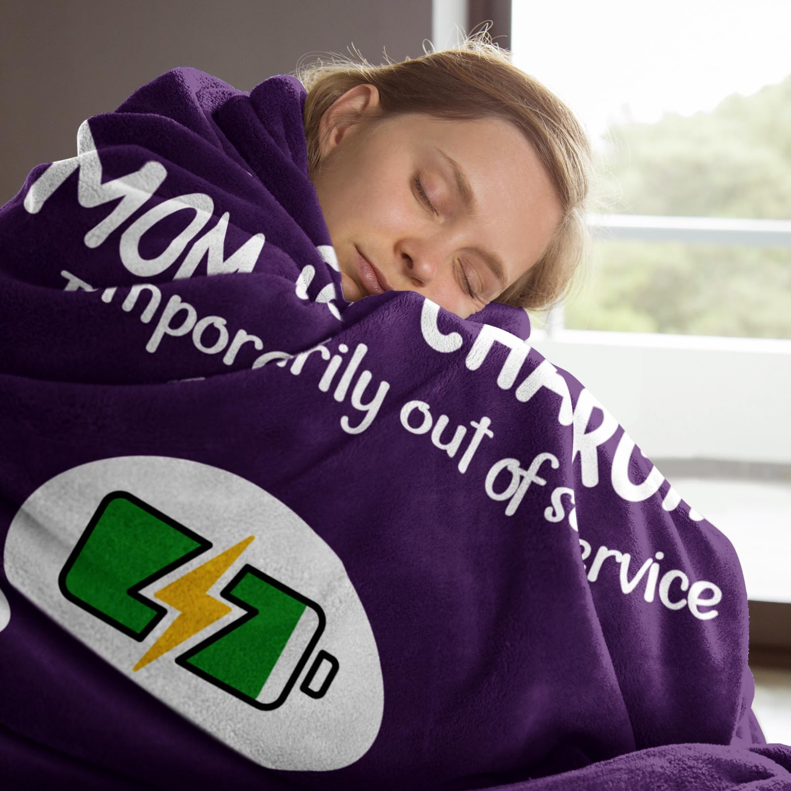 Craftique Gifts for Mom Birthday Christmas- Funny Soft Mom is Charging Blanket- New Moms Gifts for Women, Practical Blanket Throw for Napping Travel, 80”×60”