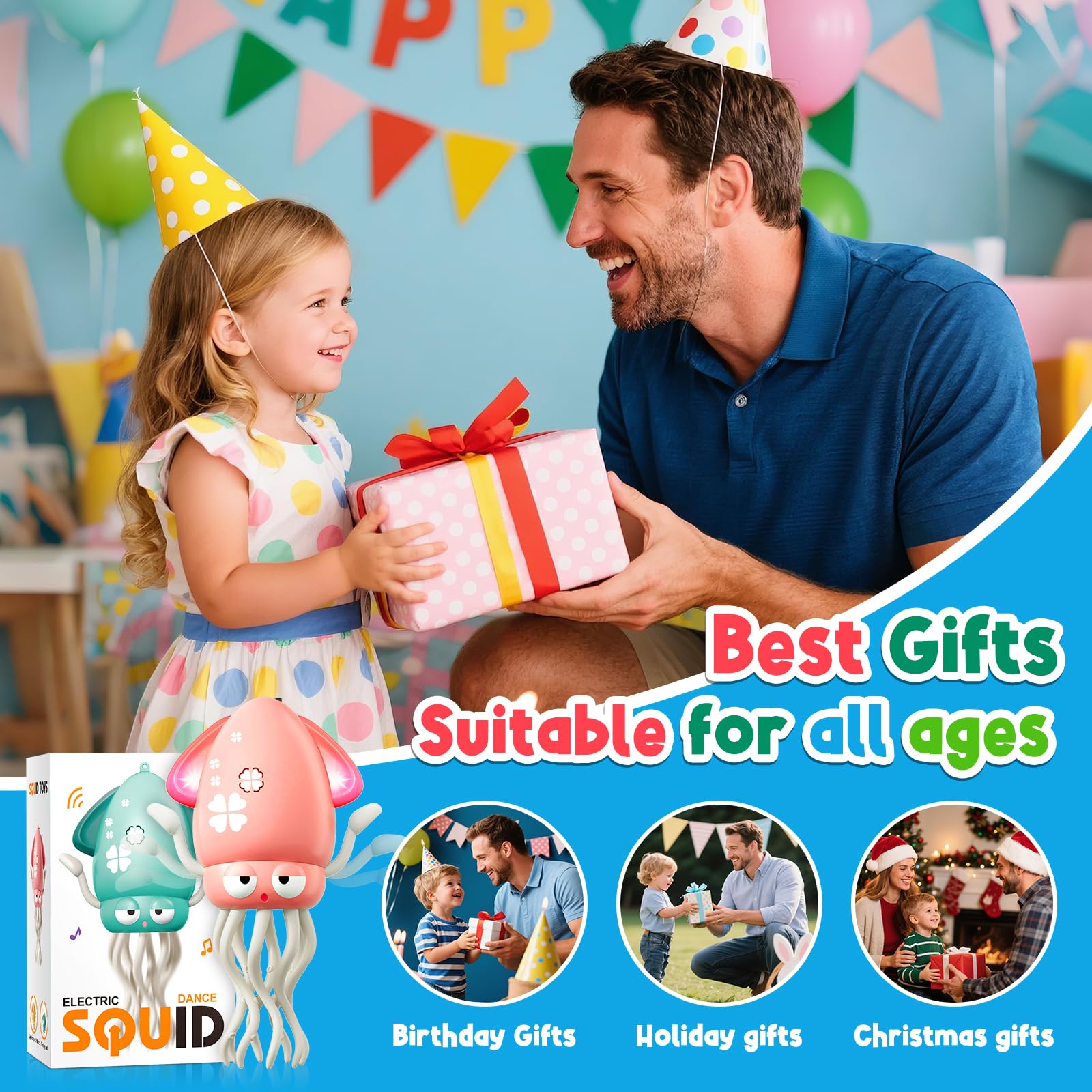 - Perfect Gift for Every Occasion: Whether you’re looking for a one year old boy birthday gift, Christmas gifts, holiday gifts, or fun Easter basket stuffers, this dancing octopus makes every occasion Interesting. With its adorable moves, lights, and music, it's a hit for babies, toddlers, and even adults—ideal for baby toys 12-18 months, and unforgettable first birthday gifts. Toddlers love its playful movements, while adults enjoy it as a fun desk toy or stress reliever