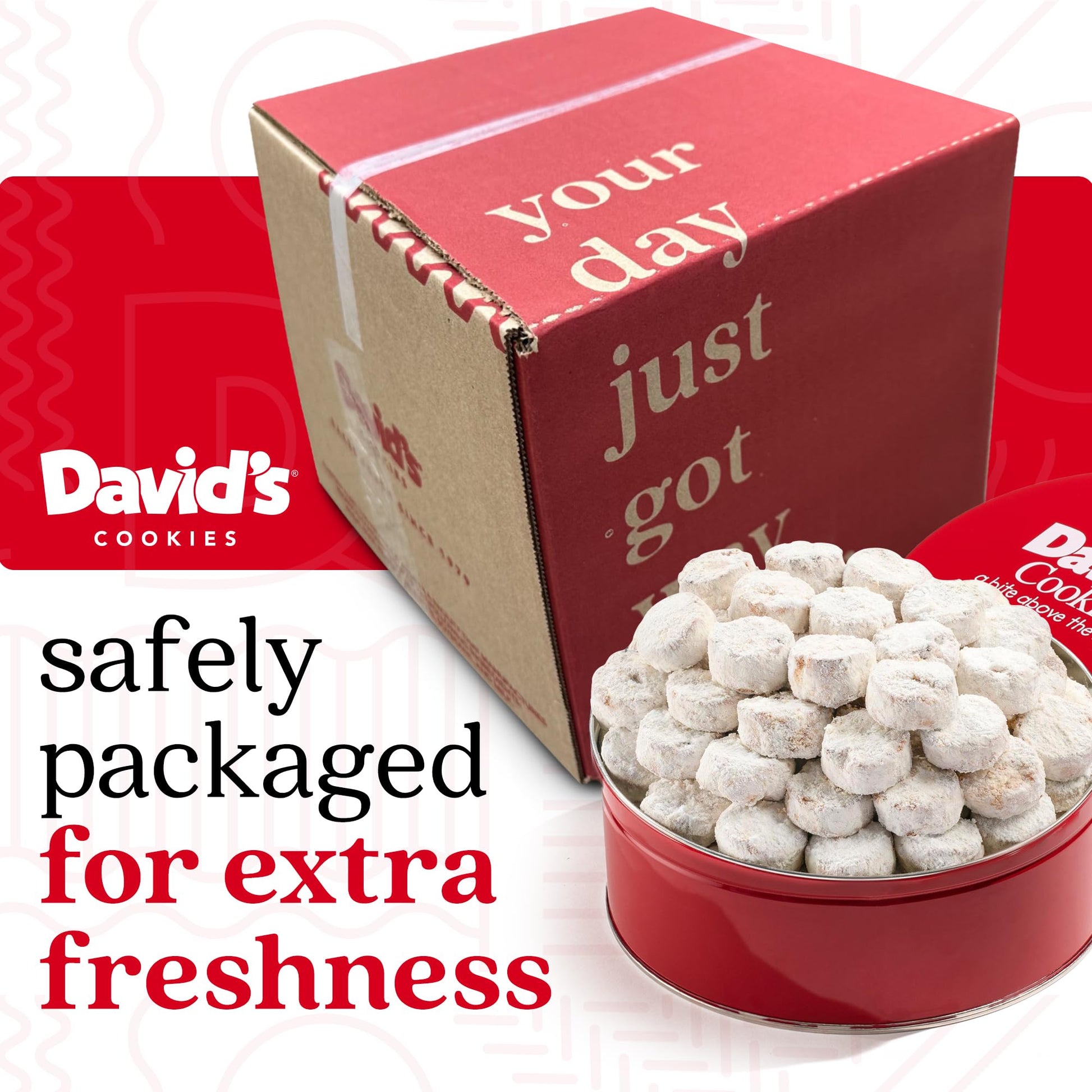 - Fresh Out Of The Oven: Unlike similar products on the market, David’s Cookies bakery desserts arrive in a beautiful cookie tin, preserving their freshness for longer, keeping your sweets protected against humidity and impurities.