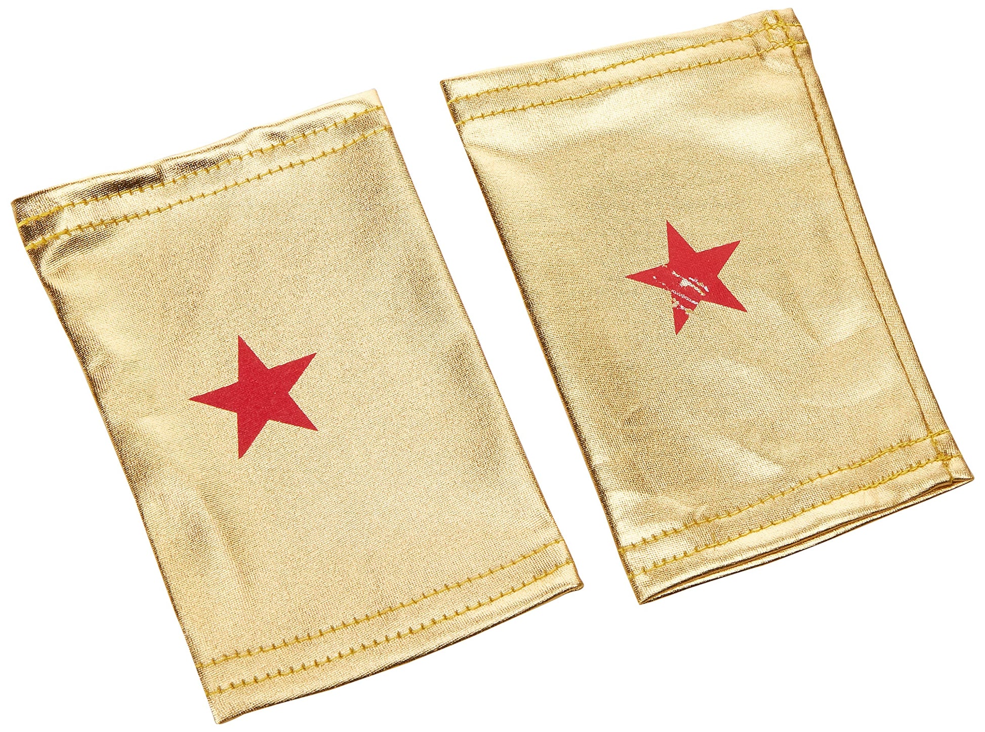 - IMPORTANT DETAILS: Gold tiara and gauntlets with red star, and Wonder Woman lasso