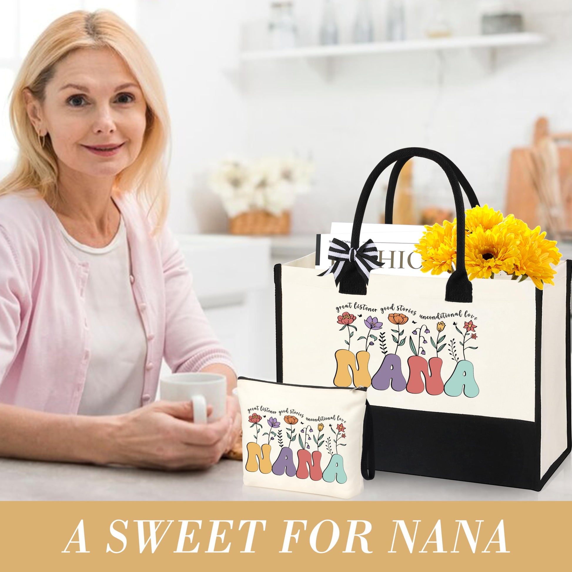 - Gifts Set for Nana: Nana Gifts contain all the well-designed items including Nana Tote bag, Nana makeup bag, natural stone bracelets and Nana cards, 16OZ glass coffee cups and an elegant gift box that is great value for money. There's never a better time to return nana's love for us with a thoughtful gift. These gifts are sure to bring a smile to her face and let her know how much you care