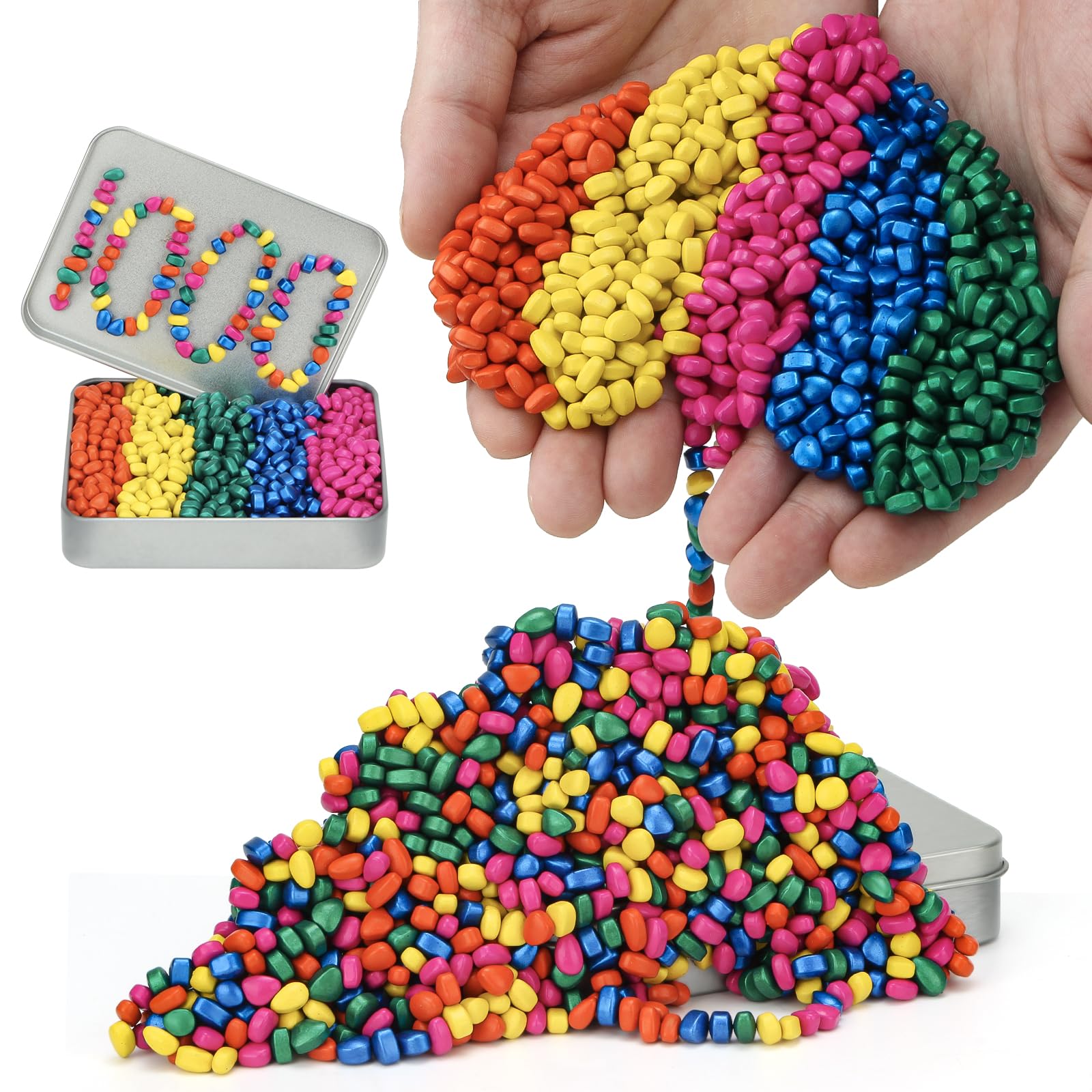 - 1.ENJOYABLE DESK TOY:Over 1000 ferrite stones,fill your hand up with the mini ferrite putty.Mash them,stack them,and feel pressure slip away as the stones slip past your fingers.Grab them in the palm of your hand while you are dealing with the boring job.