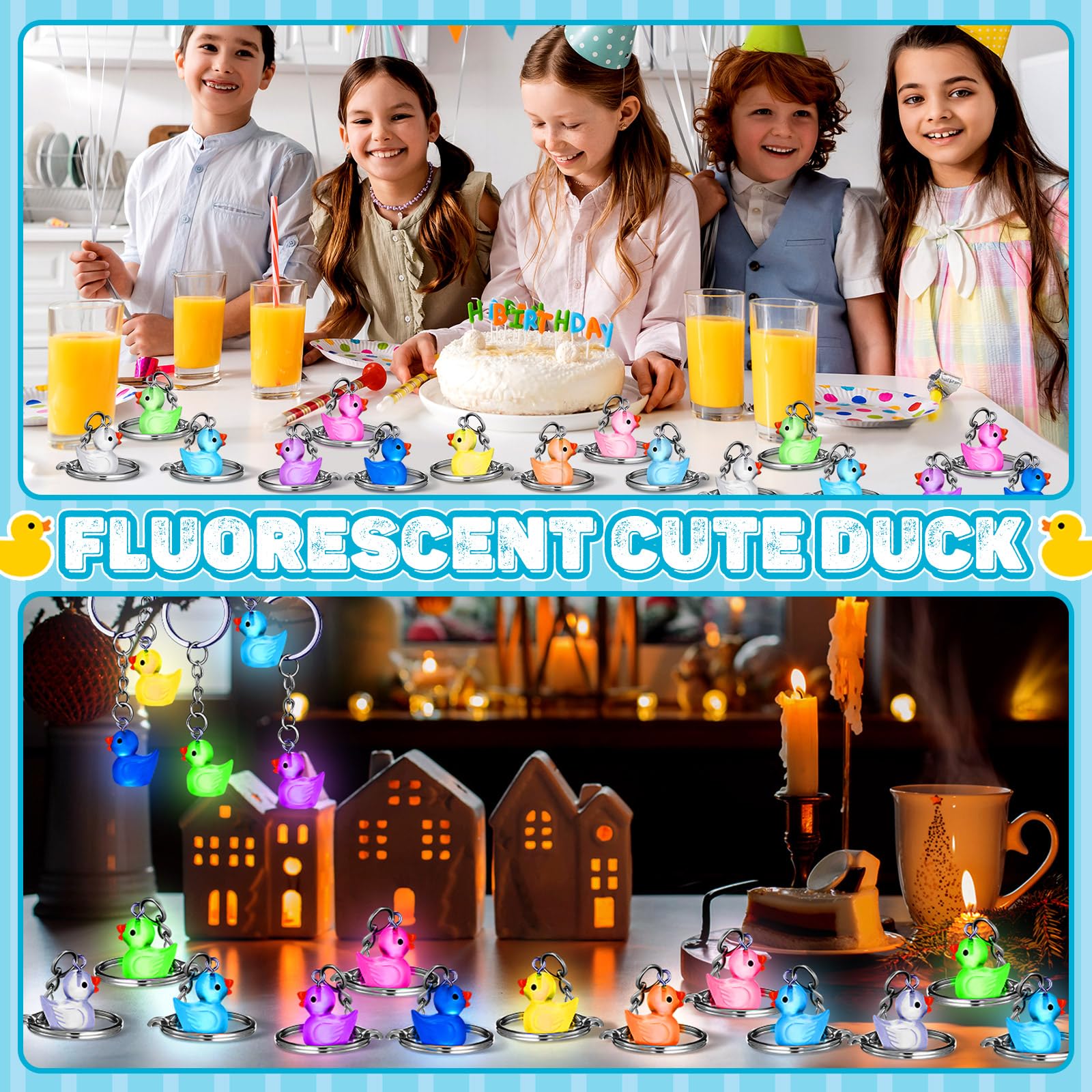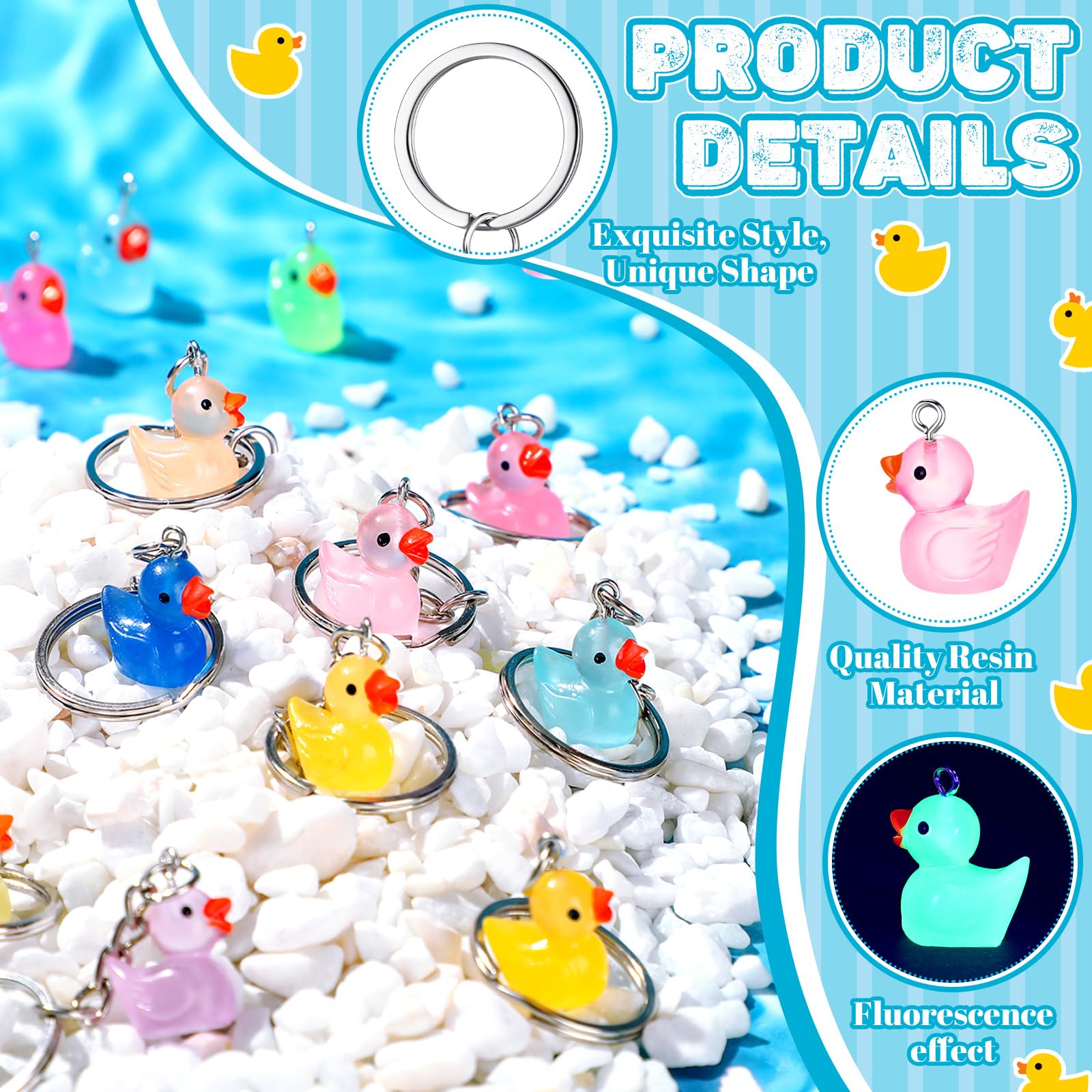 - Enough Quantity to Use and Replace: includes 100 luminous mini duck keychains in 10 colors, the size is 0.59X0.79 inches, providing enough variety for your party decorations and replacement needs; With these delightful luminous duck keychains, one could share in the joy when presenting them to family and friends; They make an ideal gift for a duck themed party or many other gatherings