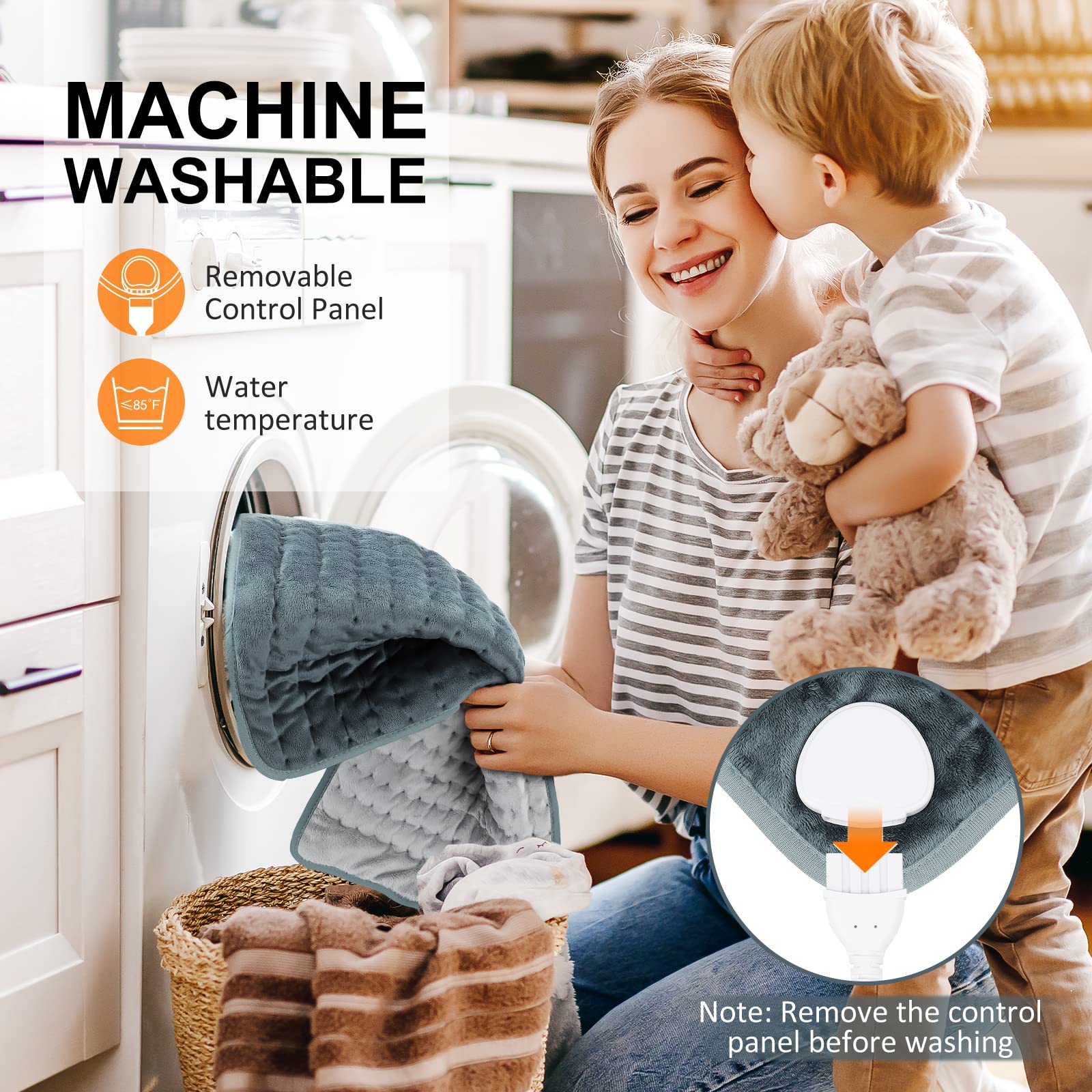 - Super-Soft Fabric & Machine Washable: Double-Sided Design with a skin-friendly material, the plush is finer and the warmth is better. For your convenience, the heating pad is easy to clean and machine washable!