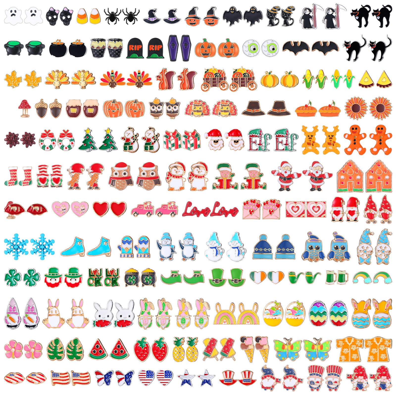 Ferreve 108 Pairs Holiday Earrings for Women Holiday Earrings Variety Pack Summer Fall Thanksgiving Gifts Party Favors(Ear Stud Style)