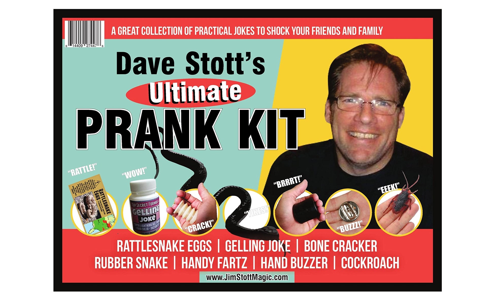 - OUR PRANKS: This kit comes with pranks like rattlesnake eggs, special gel, a bone-cracker device, a fake rubber snake, a hand buzzer, a realistic cockroach, and a fart blaster machine. Dave Stott’s ‘Ultimate Prank Kit’ is the perfect birthday gift or Christmas stocking stuffer for men, women, boys, and girls!