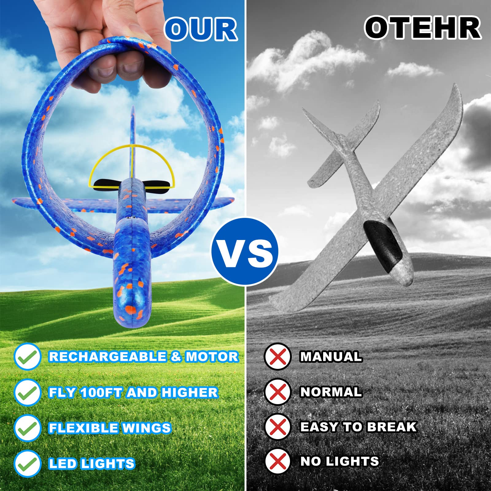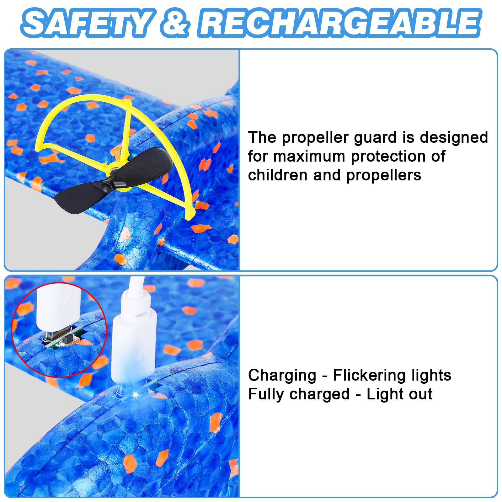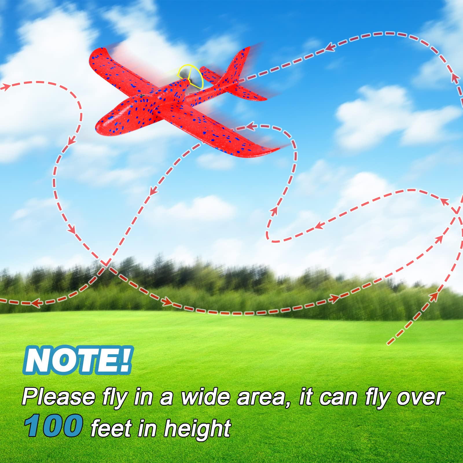 - Safe & Fun for Play - Flying airplane is made of EPP high polymer material. Safe, bendable, and will not harm kid's hands or feet, and comes with colorful LED lights, kids can enjoy the fun of flying toys even at night. Strong warranty, plz contact seller directly first for any problem you suffered, we will solve it perfectly for you.