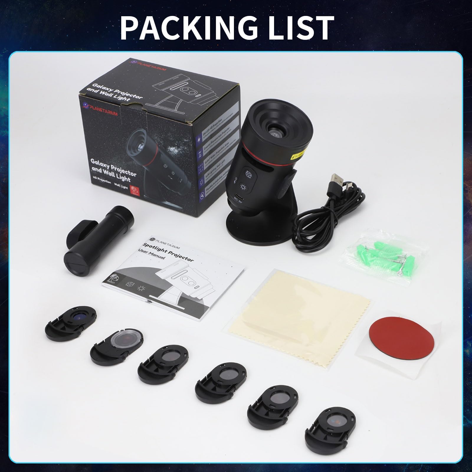 - Adjustable Focus & Clarity: Achieve crystal-clear projections at any distance with the rotatable top dial for precision focus control. Whether projecting onto a nearby wall or a high ceiling, simply twist the top to sharpen star patterns and celestial details. The advanced lens system ensures HD resolution, maintaining vibrant colors and crisp imagery even in larger spaces. This feature eliminates blurry edges, making it ideal for dynamic setups—use it in compact bedrooms or spacious living rooms without compromising visual quality.