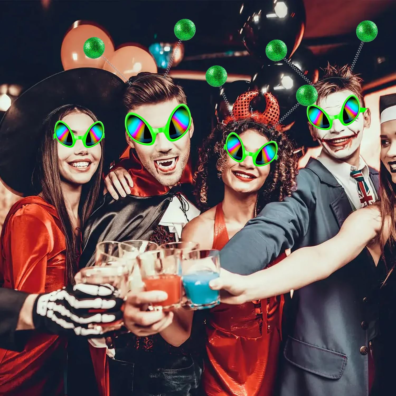 - GREAT ALIEN COSTUME SET:Unleash your inner alien with this fun and eye-catching party set. This playful set includes 6 alien glasses with rainbow lenses and 6 antenna headband boppers, making it perfect for Halloween parties