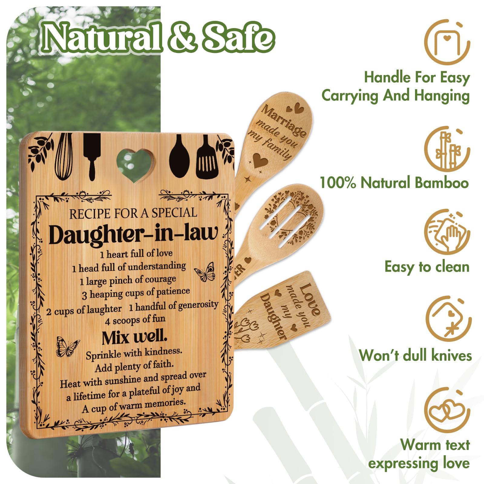 Gifts for Daughter in Law - "Recipe for a Special Daughter-in-Law" Daughter in Law Birthday Gifts Cutting Board Set, Bamboo-Made Engraved Utensil Set Gifts for Daughter in Law.