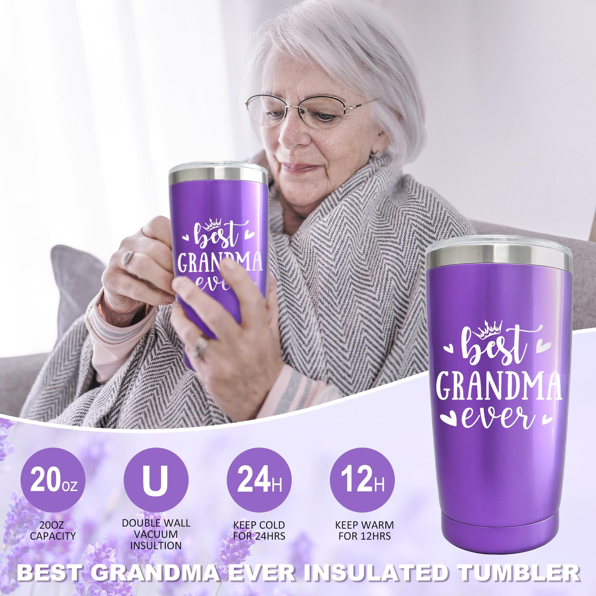 - 20 oz Insulated Tumbler And Straw - The 20oz Insulated Tumbler is made of high quality 18/8 stainless steel and features double-wall vacuum insulation to keep you warm for up to 12 hours or cold for up to 24 hours.With a large capacity of 20 ounces and a heartwarming “Best Grandma Ever” slogan, it's a thoughtful gift for Grandma's self-care to motivate her to stay hydrated and keep the sunshine in her day. hydration and make every day a sunny one