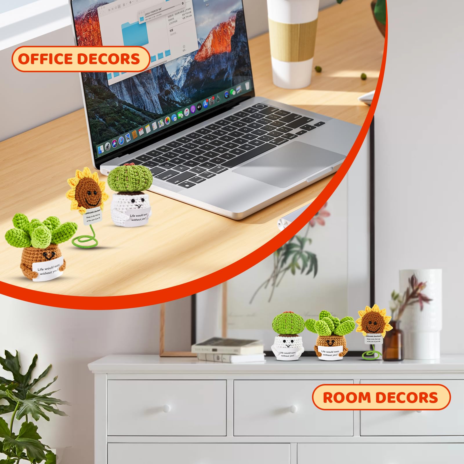 Gifts for Women Men Emotional Potato Pickle: 3Pcs Funny Crochet Dolls Christmas Stocking Stuffers Friends Coworkers Roommates College Students Sister with Cheer Up Cards (Cactus,Sunflower,Succulent)