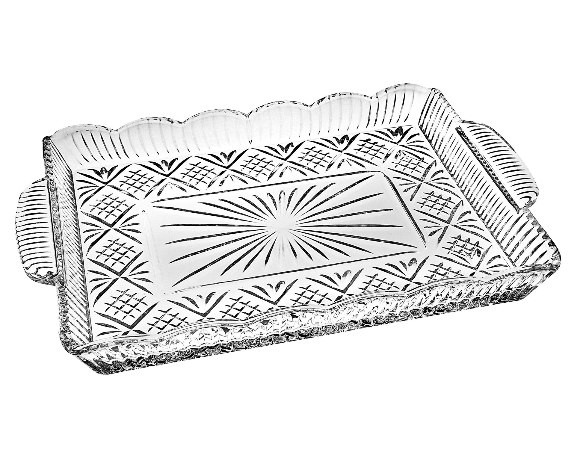 Details: The Dublin 14 by 11-inch rectangular tray, by Shannon Crystal, has many uses when serving guests. Bread, appetizers, relish tray, desserts - these are just a few the ways this lovely tray can help.