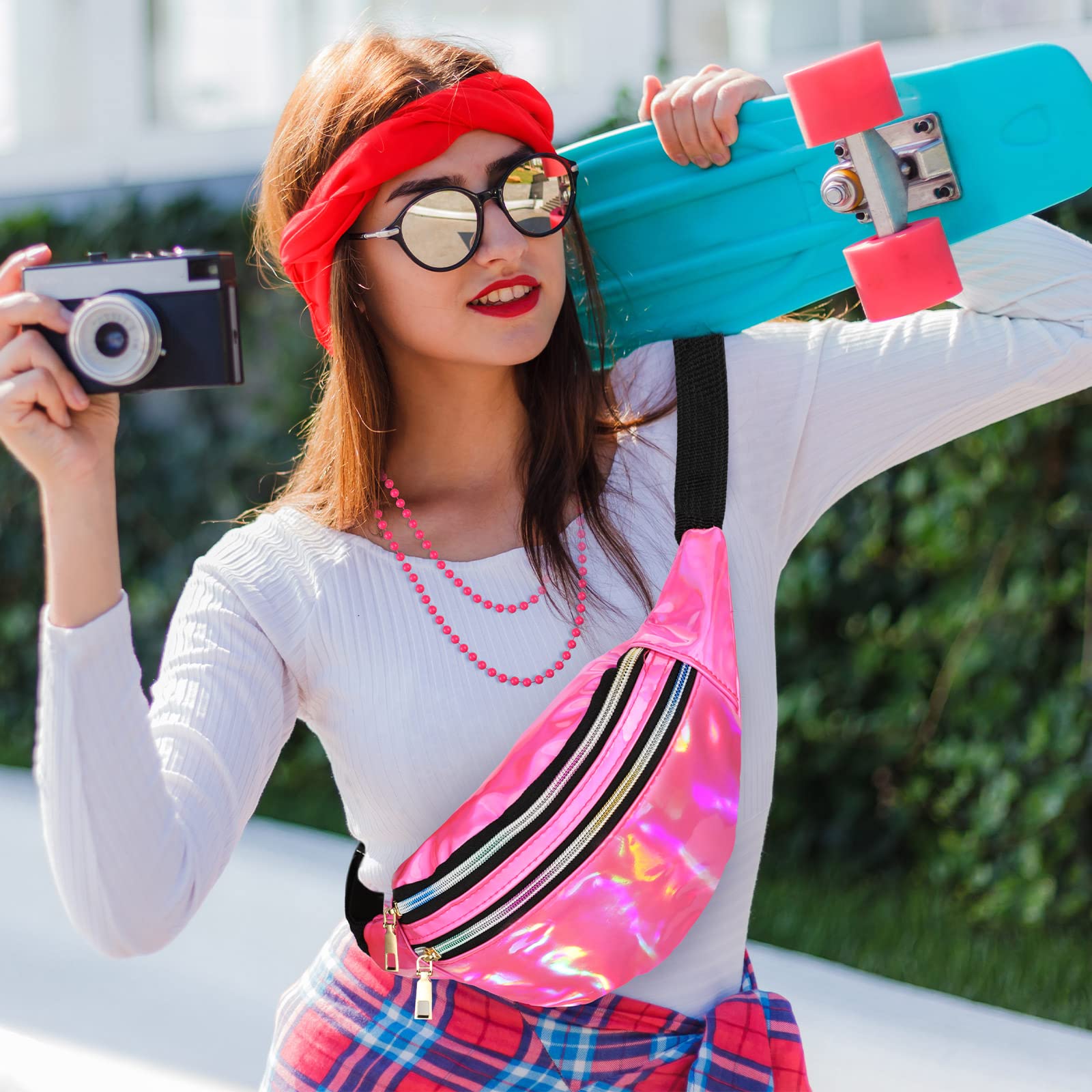 - Women 80s Accessories: this 80s accessories set consists of 1 piece of holographic 80s fanny pack, 1 pair of neon leg warmers, 1 pair of fishnet gloves, 1 pair of earrings, 1 piece of lace headband, 1 piece of necklace and 10 pieces of silicone bracelets, meeting your outfit dress up needs for 80s theme party