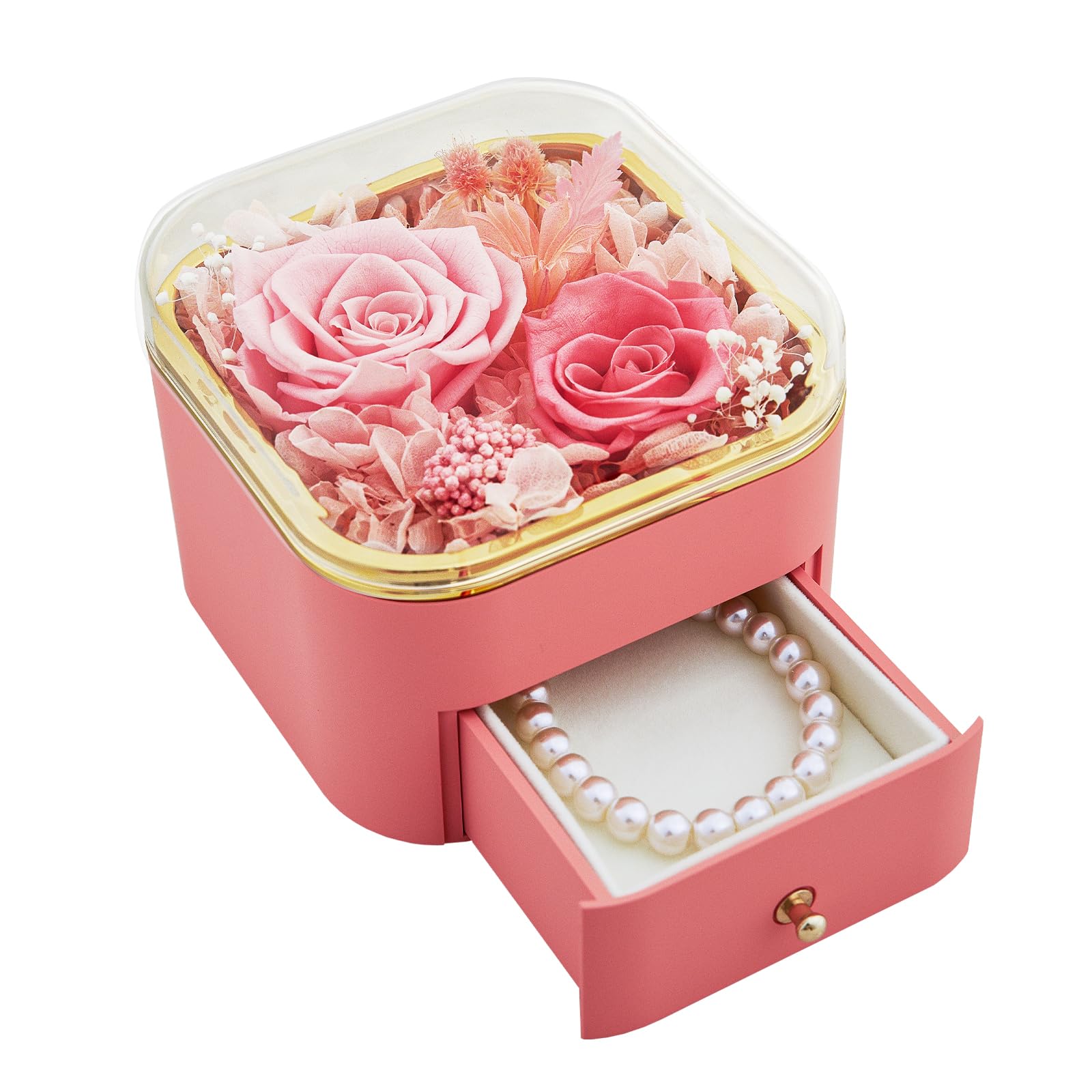 - š¹ćGifts For Women Birthday Uniqueć Mother's Day Gift Flower Gift for Mom,She comes in her own wrapped gift box so you can just give it away without having to spend time on wrapping. The product gift box includes: 2 pickled eternity rose + 1 gift box + 1 Pearl Bracelets+ 1 greeting card. Besides, it is a good choice to use it as a decoration for living room, bedroom, bookshelf and table or dressing table, especially at night, turn on the light, the sense of atmosphere is directly pulled full.