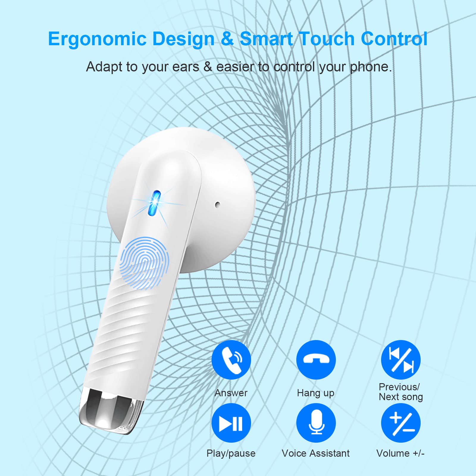 - Touch control your devices of iOS or Android by the earbuds: the noise cancelling earbuds support dual-ear touch control, providing convenient operation on the volume control, previous/next song, pause and answer calls along as well as voice assistant control. Bringing you the true wireless experience when you use the iOS or Android smartphones, pc, tablets, laptops, TV... Also, nothing is more important than workout always with music.