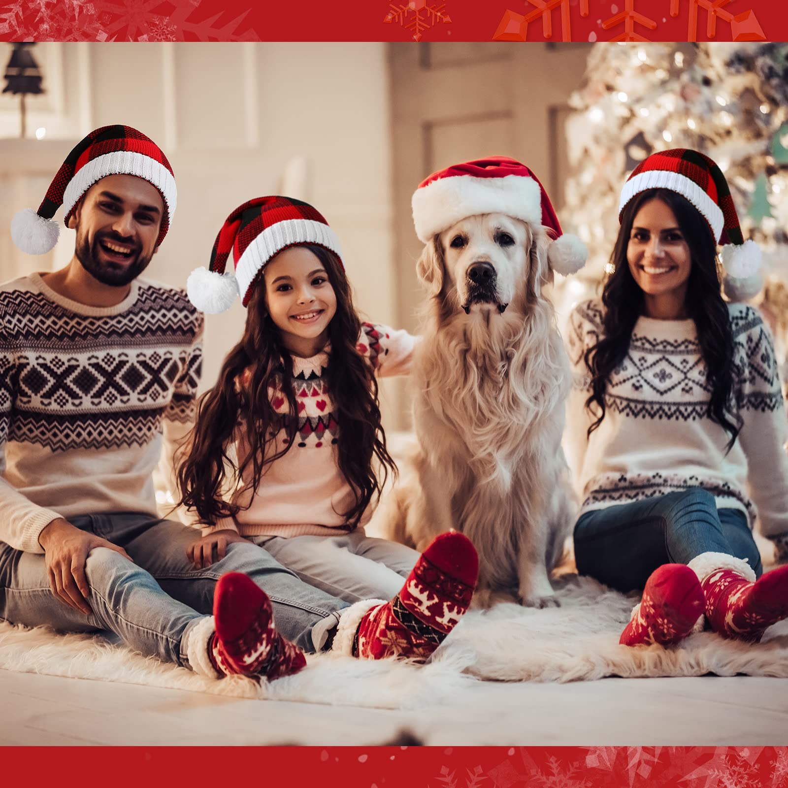 Loopeer 3 Pieces Christmas Hats Christmas Knitted Caps Winter Warm Beanie Plaid Hats with Pom Pom Santa(Red, Black)