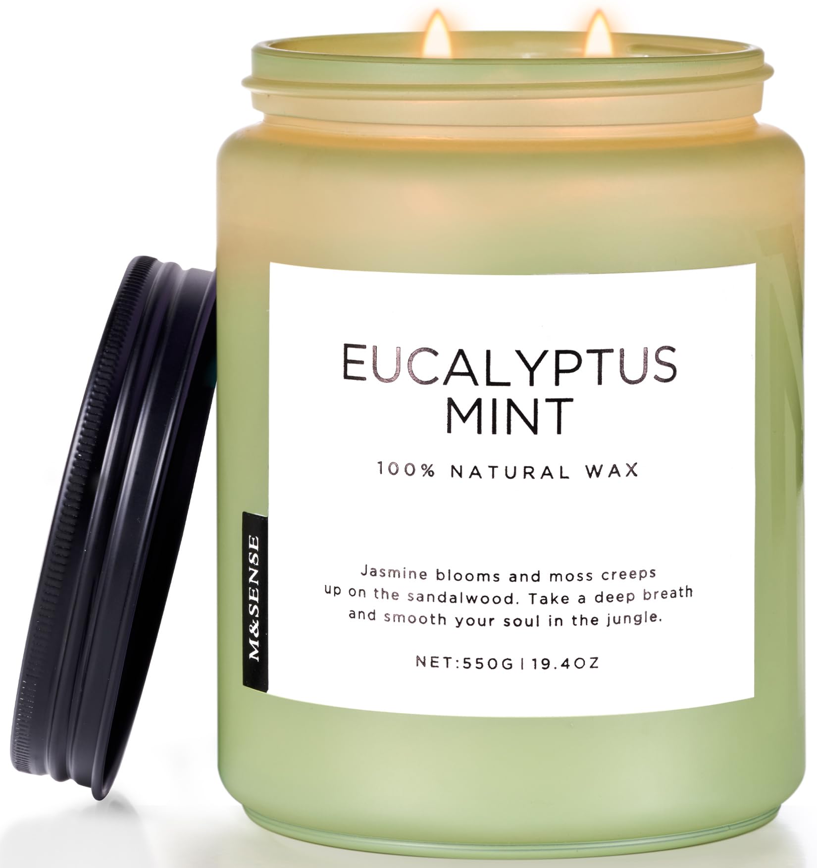 M&SENSE Eucalyptus & Mint Candles for Home Scented, 19.4oz 110 Hours Burn Soy Aromatherapy Candle Gift for Stress Relief, Meditation, Yoga, Relaxing SPA, Natural Soy Wax for Men and Women