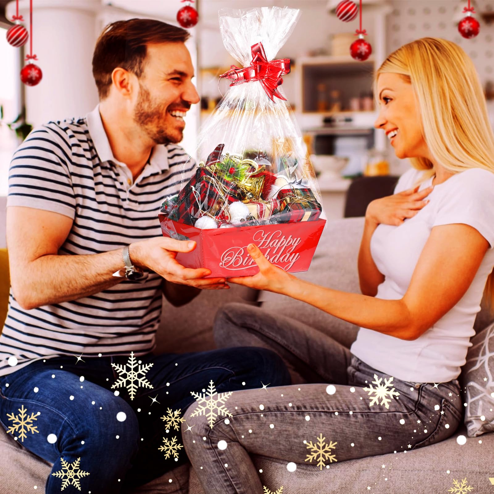 - Suitable Occasions: The large gift basket with cellophane wrap comes with red pull bows that go well with any holiday like Christmas, Valentine's Day, New Year, or Thanksgiving, and are also suitable as a graduation gift, birthday gift, wedding or housewarming gift, etc.